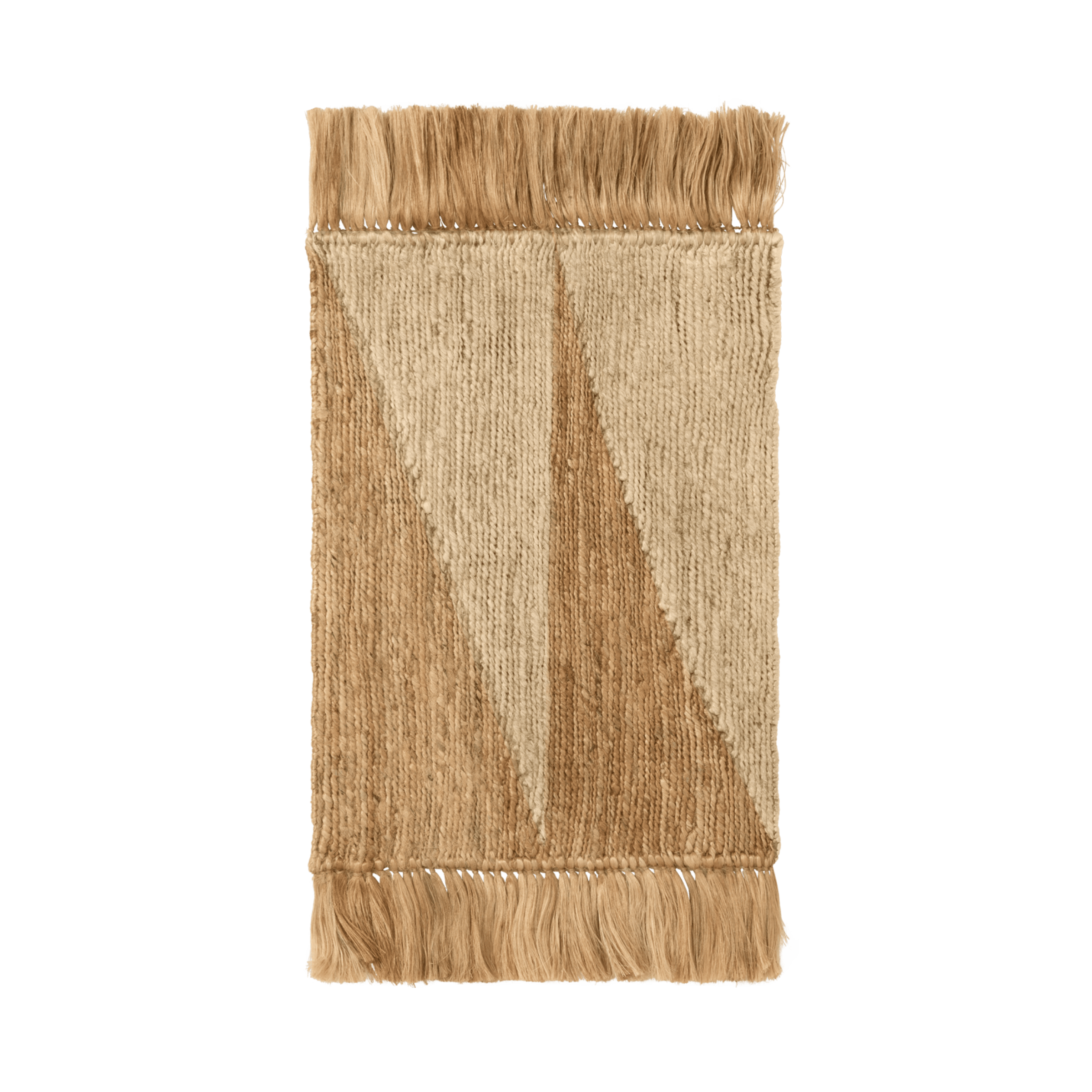 Study Rug is a testament to traditional craftsmanship and minimalist aesthetics. Handcrafted in India from 100% natural jute by skilled artisans, it is woven using the soumak technique – which involves interlacing the threads over and under the warp. This weaving method creates a raised, laced pattern in a geometric, triangular motif, giving the surface a striking texture and exceptional depth.