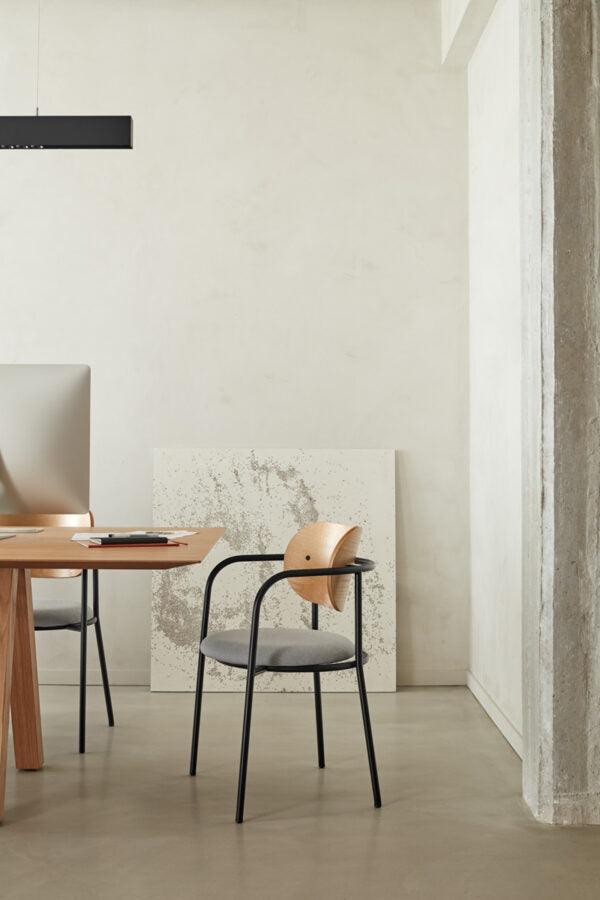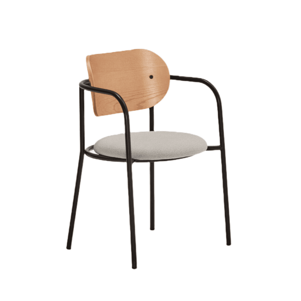 Chair Eclipse, as the name suggests, is inspired by the phenomenon of an eclipse. The interesting design, created by the upholstered seat and wooden backrest along with a metal structure, is perfect for modern interiors. The unique, minimalist style of this design not only attracts attention but also boasts great functionality — Eclipse will work wonderfully in a dining room, living room, or office.