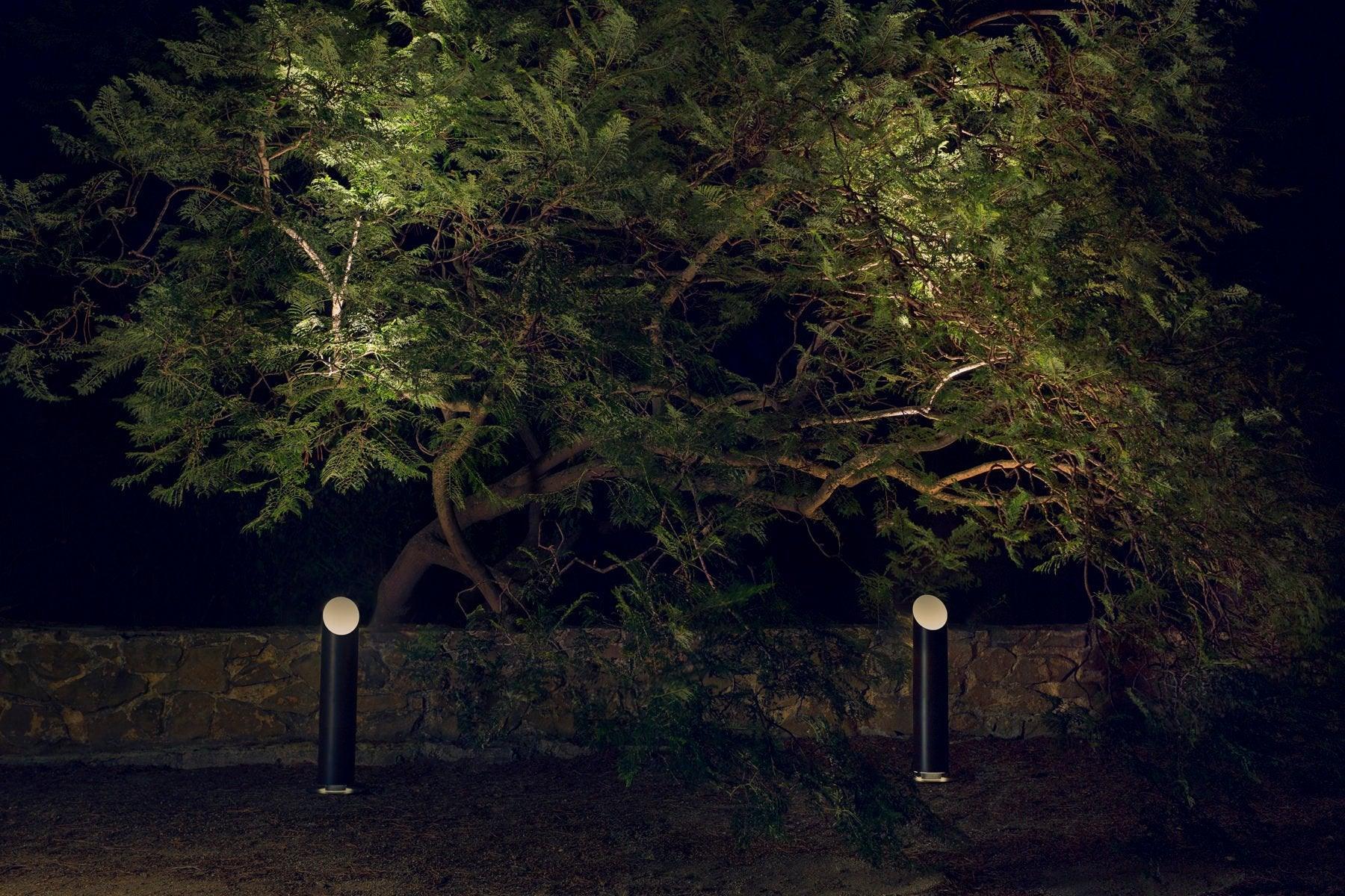 Available in graphite gray or brown in two heights: 48 and 79 cm. Elipse functions as a single lighting element or in combination with several at once. This collection also offers an outdoor wall version.