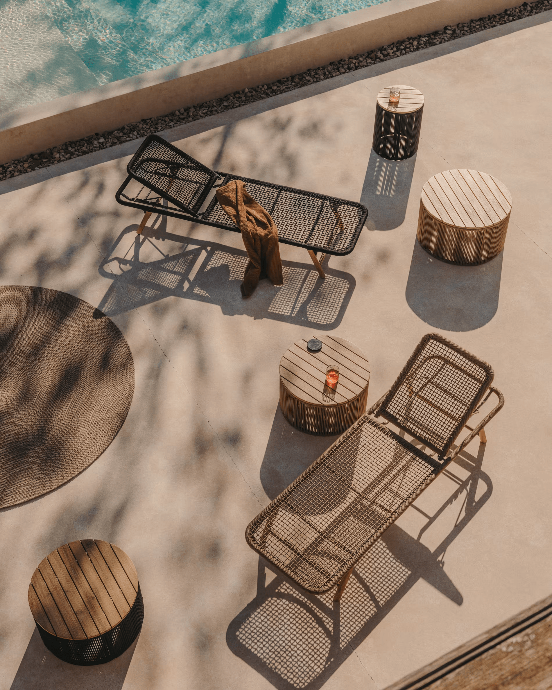 Add the character of your dining room outside or inside thanks to the Dandar collection. A steel frame with a string will give the style of every space and contrasts with a solid acacia top, bringing a natural accent.