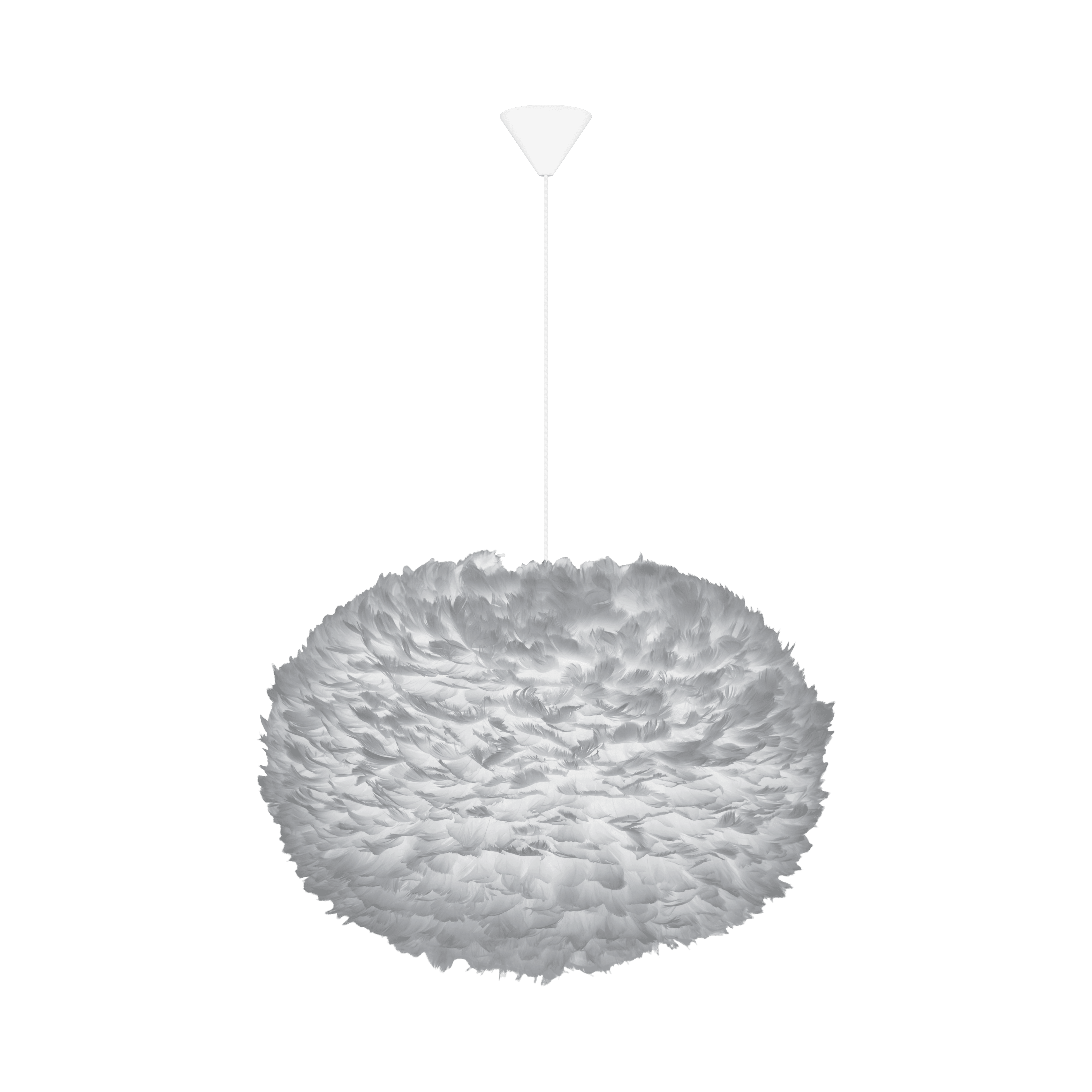 Hanging Lamp Cord Set in white shade. This modern and simple set includes a 2.1-meter textile cord, a ceiling cover, and an E27 socket. For a complete lighting effect, we recommend using the Idea LED bulb and a shade from UMAGE to create your own unique lighting arrangements, perfectly suited to your interior.