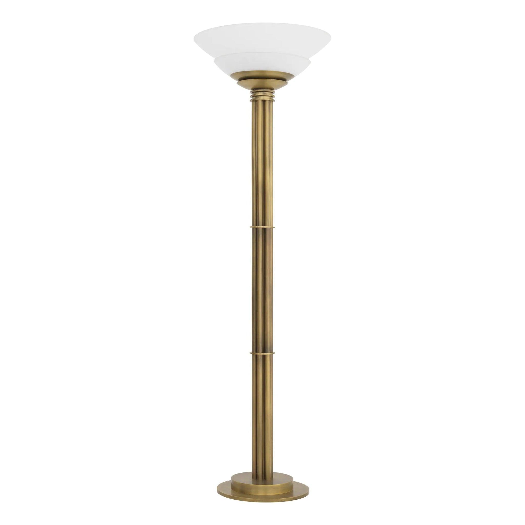 Brass details accentuating the base and stem of the lamp give it a luxurious character, reminiscent of the atmosphere of the Art Deco era. The white glass shades feature a refined, swirling pattern that adds subtlety and alluring charm to the lamp.