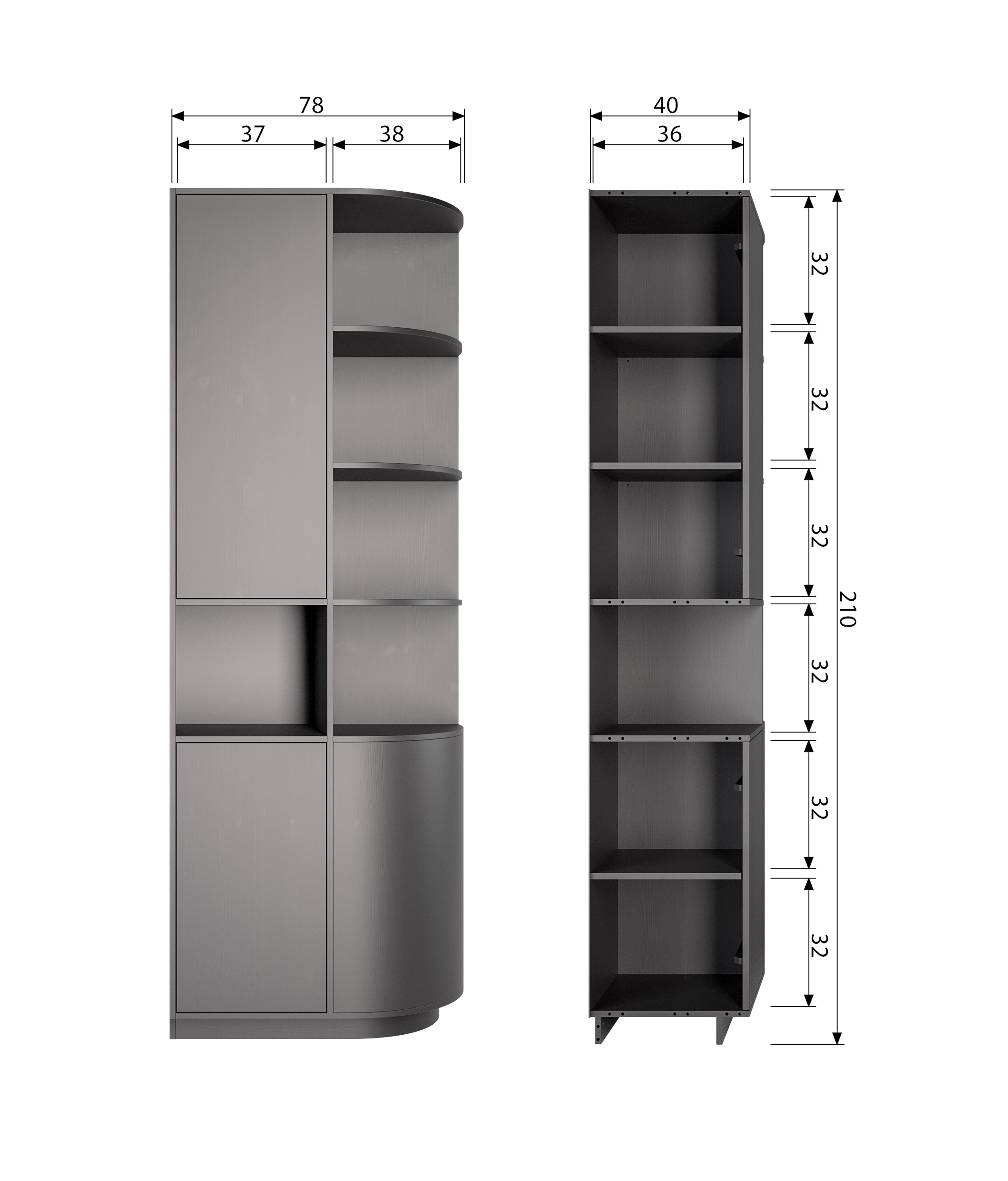 The Fianca Shelf is made from certified pine wood and finished in deep black. This unique piece of furniture combines open and closed compartments, creating a stylish whole while offering plenty of space to store your most beautiful accessories.