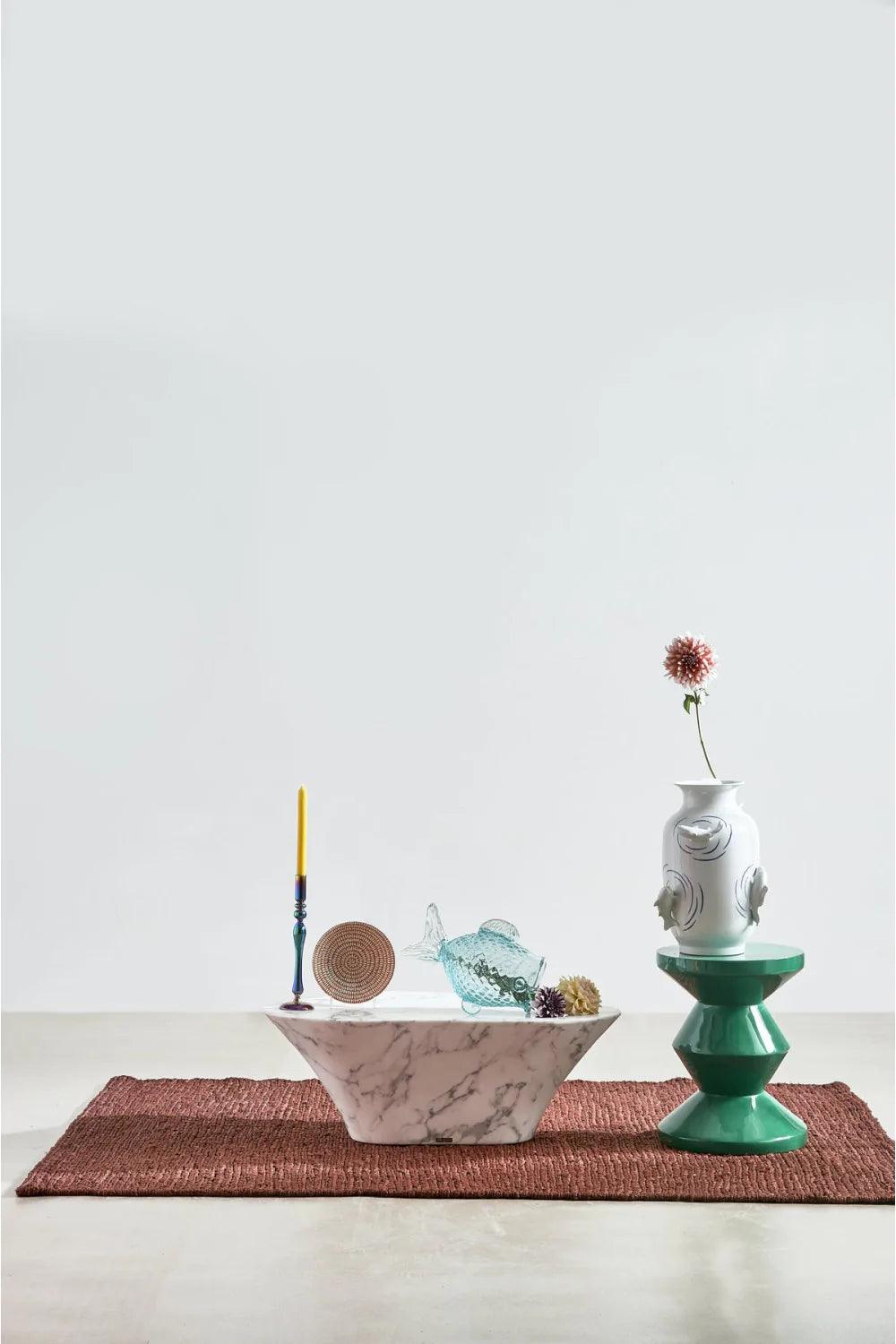 Vase Fish Pond in white is an aesthetic addition that will bring a touch of eccentric design to your home. The unconventional shape and protruding fish sculptures are a clear inspiration from the natural beauty of Japanese garden ponds. Its subtle yet distinctive appearance makes the white Fish Pond vase an ideal accessory for almost any interior.