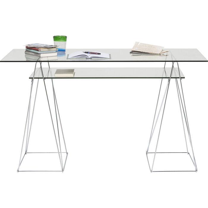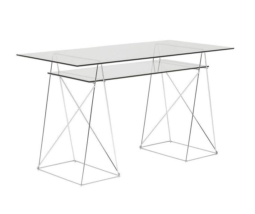 Perfectly organized: two glass tops arranged one above the other offer space for work, archiving and maintaining order. Lekkie, łatwe w pielęgnacji i ponadczasowe materiały doskonale pasują do minimalistycznego i nowoczesnego stylu aranżacji wnętrz. Two cleverly designed steel frames serve as supports for transparent glass countertops.