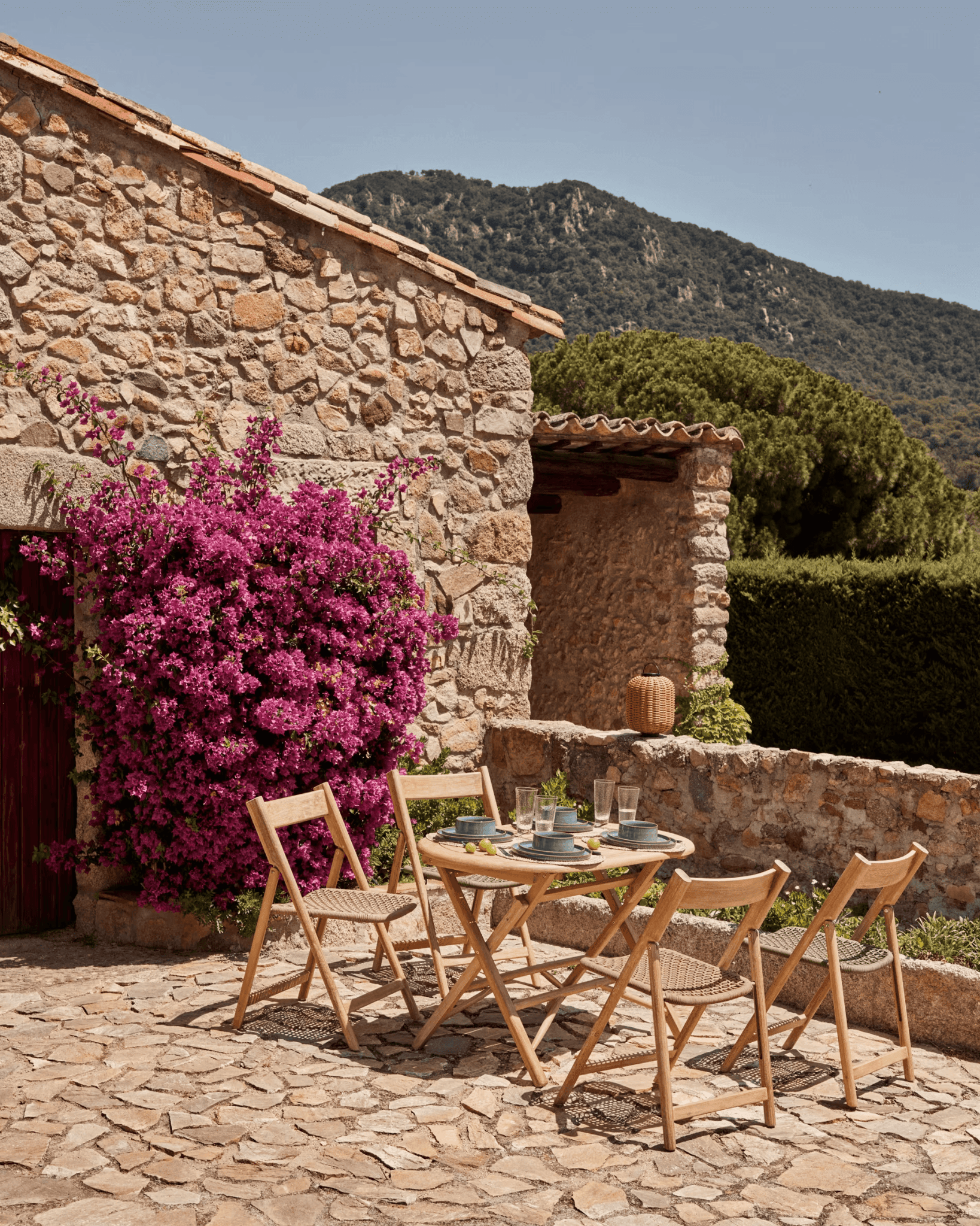Krzesło składane DANDARA lite drewno akacjowe z beżowym siedziskiem La Forma    Eye on Design