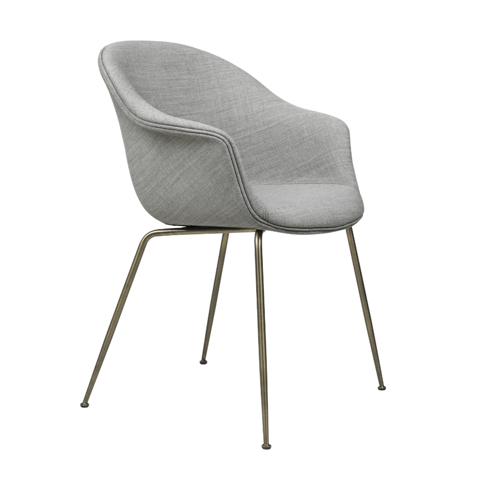 Upholstered BAT chair with a brass base