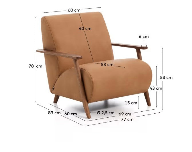MEGHAN Armchair brown leather with dark ash base