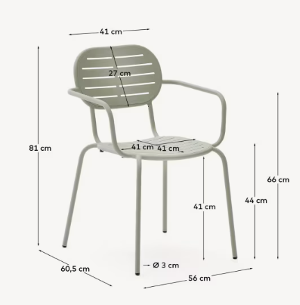 Brai it Garden chair with armrests, which impresses with the simplicity of form and solid performance. Made of galvanized green steel, it is resistant to rust and corrosion, which ensures its durability in external conditions. The possibility of stacking makes the chair extremely practical and easy to store.