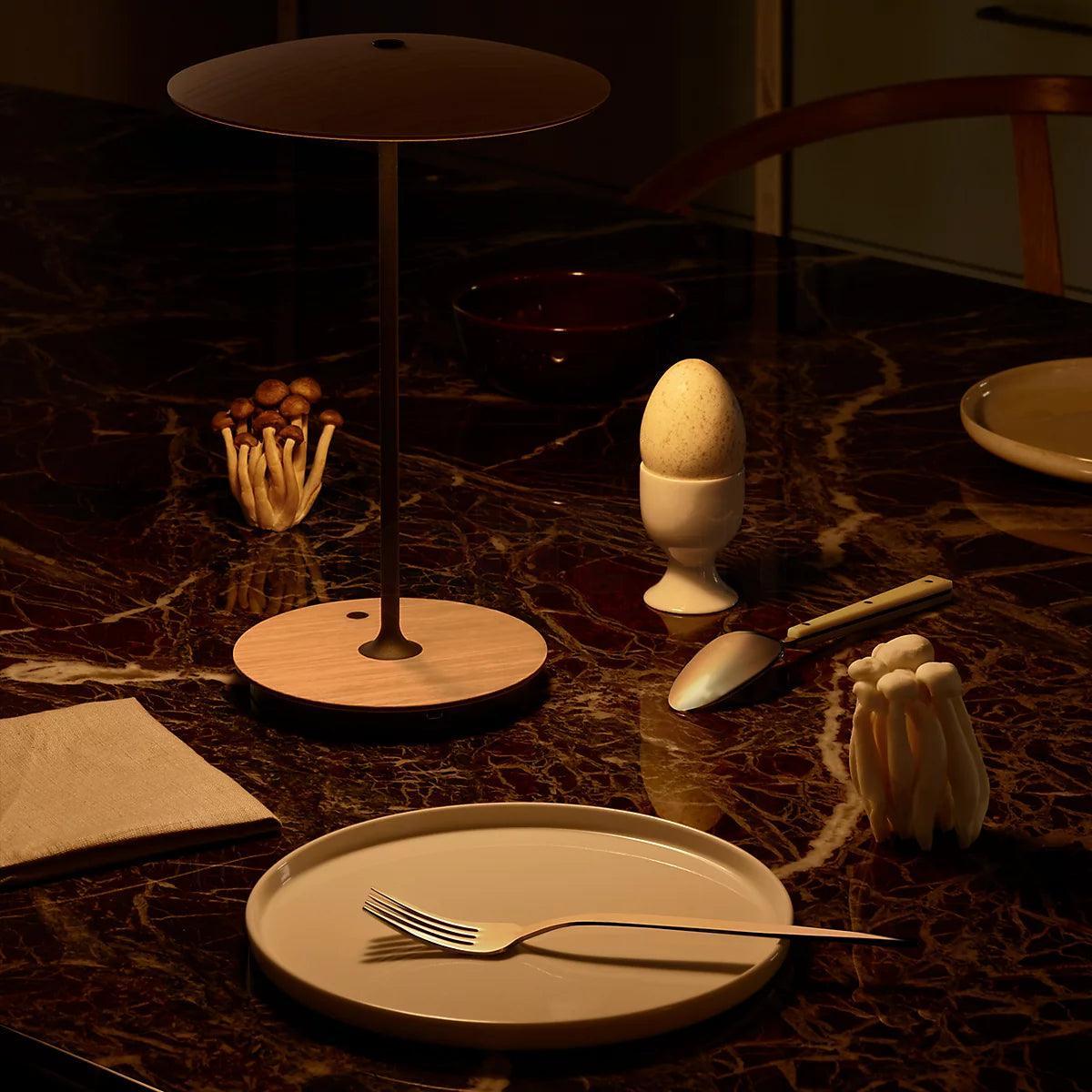 Thanks to the lithium-ion battery, the new portable table version of Ginger allows for independent lighting of space with complete freedom and without the need for cables.