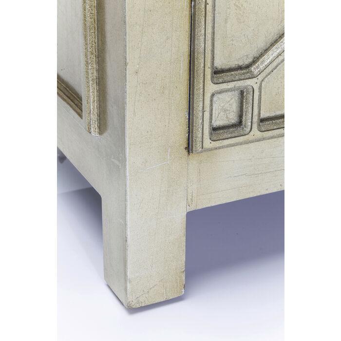 Cabinet Alhambra is a tribute to ornamentation and details inspired by Arabic art. Its front features intricate patterns, highlighted by an exclusive, matte finish in silver, which adds elegance and a luxurious appearance perfectly suited to the glamour style.