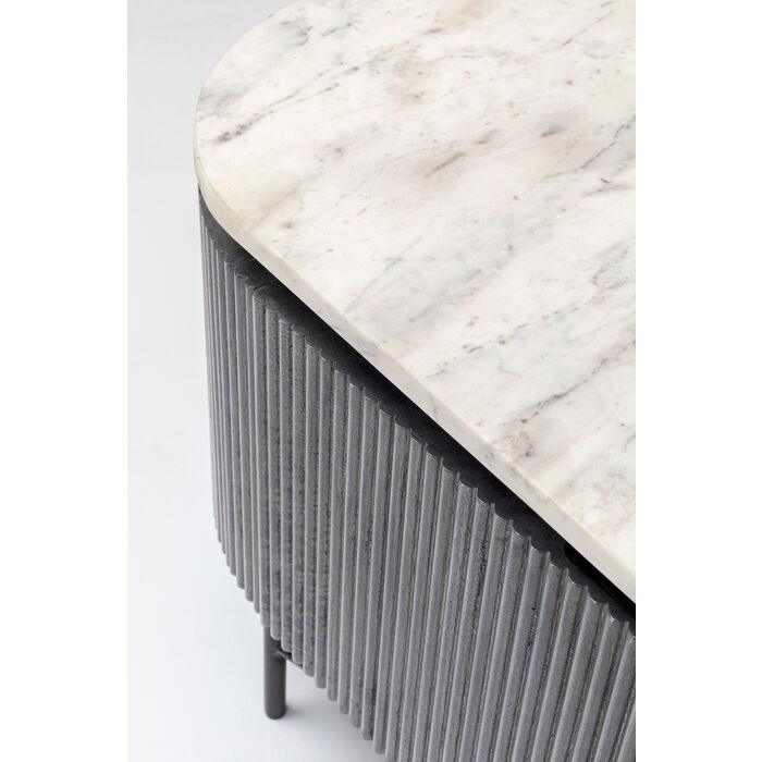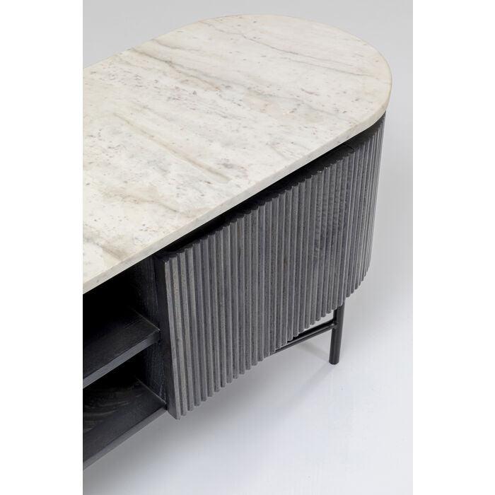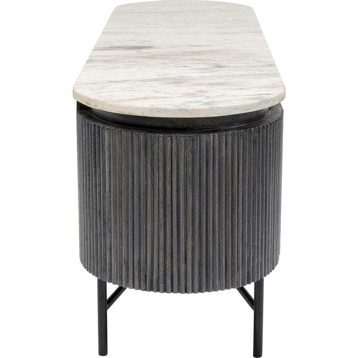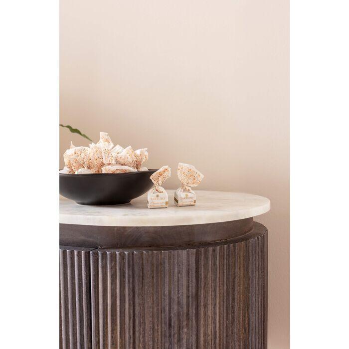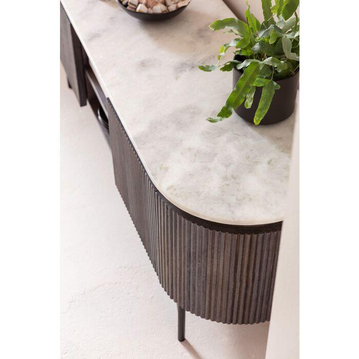 The Glenn furniture collection has been designed for contrasts. Smooth, velvety surfaces are intertwined with nourished textures. Light marble gives this dresser with two large drawers an extremely elegant character. Wood, covered with varnish and enamel, is protected, and at the same time its living structure, typical for mango wood, is emphasized. Cabinet, although extremely functional, also impresses with its luxurious and high -quality appearance.