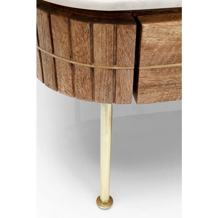 Models from the Grace collection introduce harmony to the living room thanks to their delicate curves. On the one hand, it is due to the noble composition of materials such as solid wood and marble. On the other hand, the collection is playing with surfaces, such as here where wooden fronts have structural and smooth sections. Elegant project coffee table It is topped with a discreet, brass finish.
