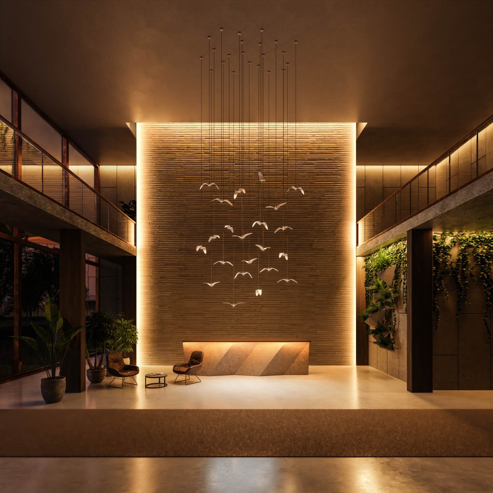Inspired by the freedom of bird flight, hanging lamps Night Birds bring dynamics and poetic charm to the interior. Production technology, consisting in forming glass by blending and bending, allows you to obtain unique nuances of shapes and colors. Each lamp from this collection, embedded in a minimalist -varnished aluminum setting, represents various phases of bird flight, creating spectacular arrangements especially in groups.