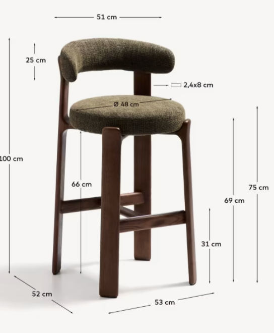 The upholstered seat and backrest are covered with a soft chenille fabric, creating a striking contrast with the wood. The material is not only pleasant to the touch but also exceptionally durable and environmentally friendly – made partially from recycled fibers. The entire piece is designed with comfort in mind – the comfortable seat, well-shaped backrest, and appropriate height make the Granite perfect for a kitchen island or high table. It is a piece of furniture that not only looks beautiful but also brings warmth, lightness, and a stylish balance to the interior. Ideal for lovers of good design and natural materials.