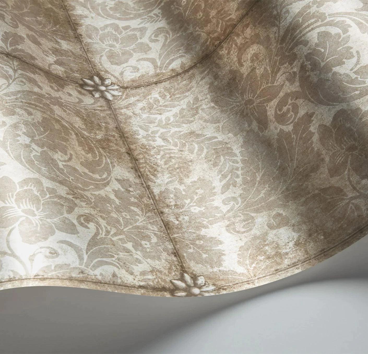 Original wallpaper King's Argent resembles questions that are covered with a floral pattern. The pattern is inspired by the Baroque Hampton Court palace. In the heart of the baroque design, there was wealth, and the mirrors were a great luxury and symbol of extreme wealth.