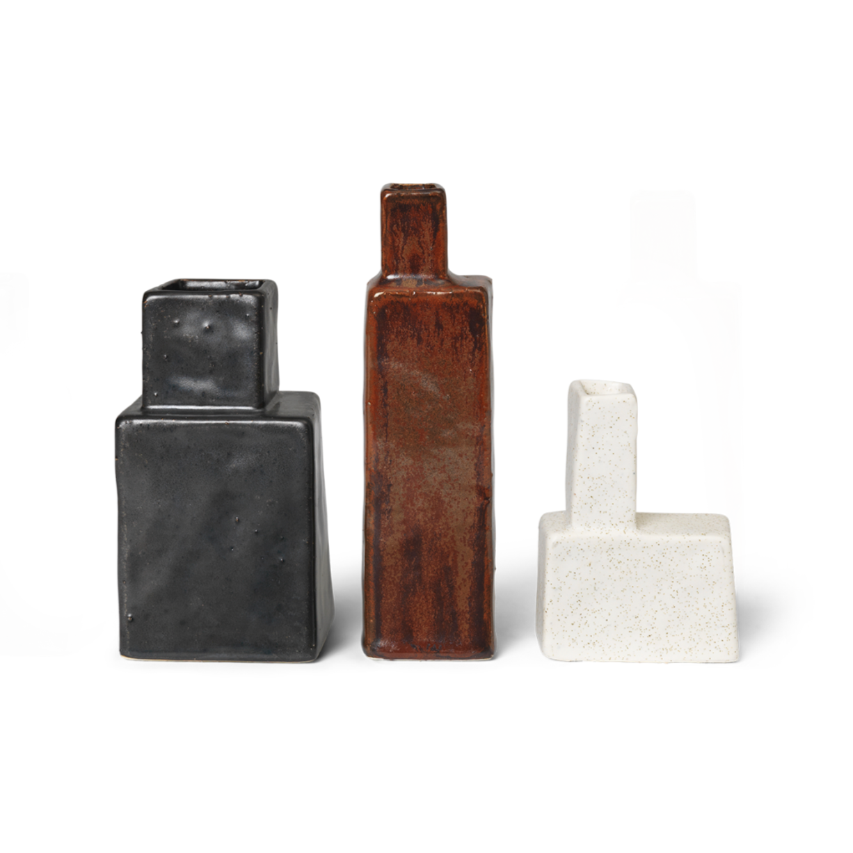 A set of three vases KOA is a combination of brutal aesthetics with raw, hand -made charm. Each vase is characterized by a unique geometric shape, reminiscent of architectural forms, and subtle imperfections in enamel give them a craft character. Various proportions and sizes - from high and slender to low and wide - create rhythmic, eye -catching composition.