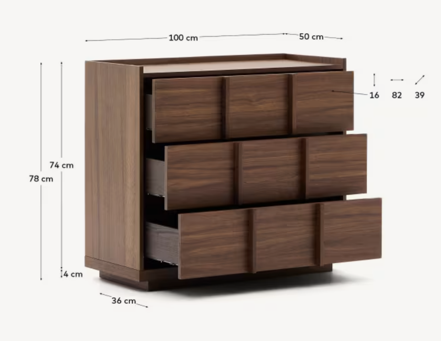 Equipped with three spacious drawers featuring adjustable, hidden runners and a soft-close system, the Onix chest of drawers offers a high level of comfort for everyday use. Thanks to its adjustable feet, it stands firmly even on uneven surfaces, and the certified FSC wood used in its production reflects a responsible approach to the environment.