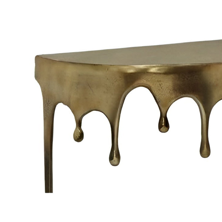 Avant-garde console Drops in gold color is an incredibly striking piece of furniture that immediately draws attention. Its unusual shape, resembling flowing metal, gives the interior an artistic character and makes it a true decoration of the space. It is an excellent choice for those seeking designer accents with a unique style.