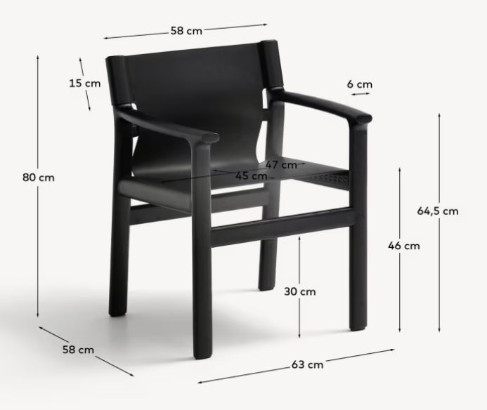 JAN armchair in black recycled leather with black ash wood