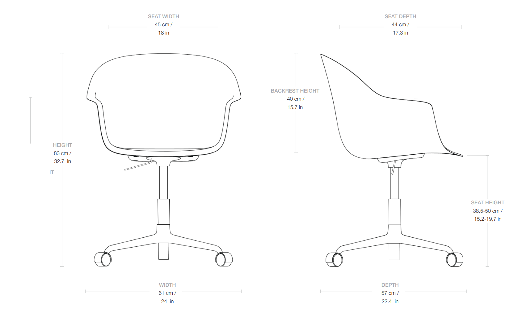 Office chair Bat, designed by the renowned Danish-Italian studio GamFratesi, is a blend of modern aesthetics and ergonomics in the spirit of Scandinavian minimalism. The characteristic shape of the backrest with armrests, inspired by the outstretched wings of a bat, gives it a unique appearance and ensures comfort during work. The mobile base with wheels and smooth height adjustment allow the chair to be tailored to the individual needs of the user in a dynamic office and home environment.