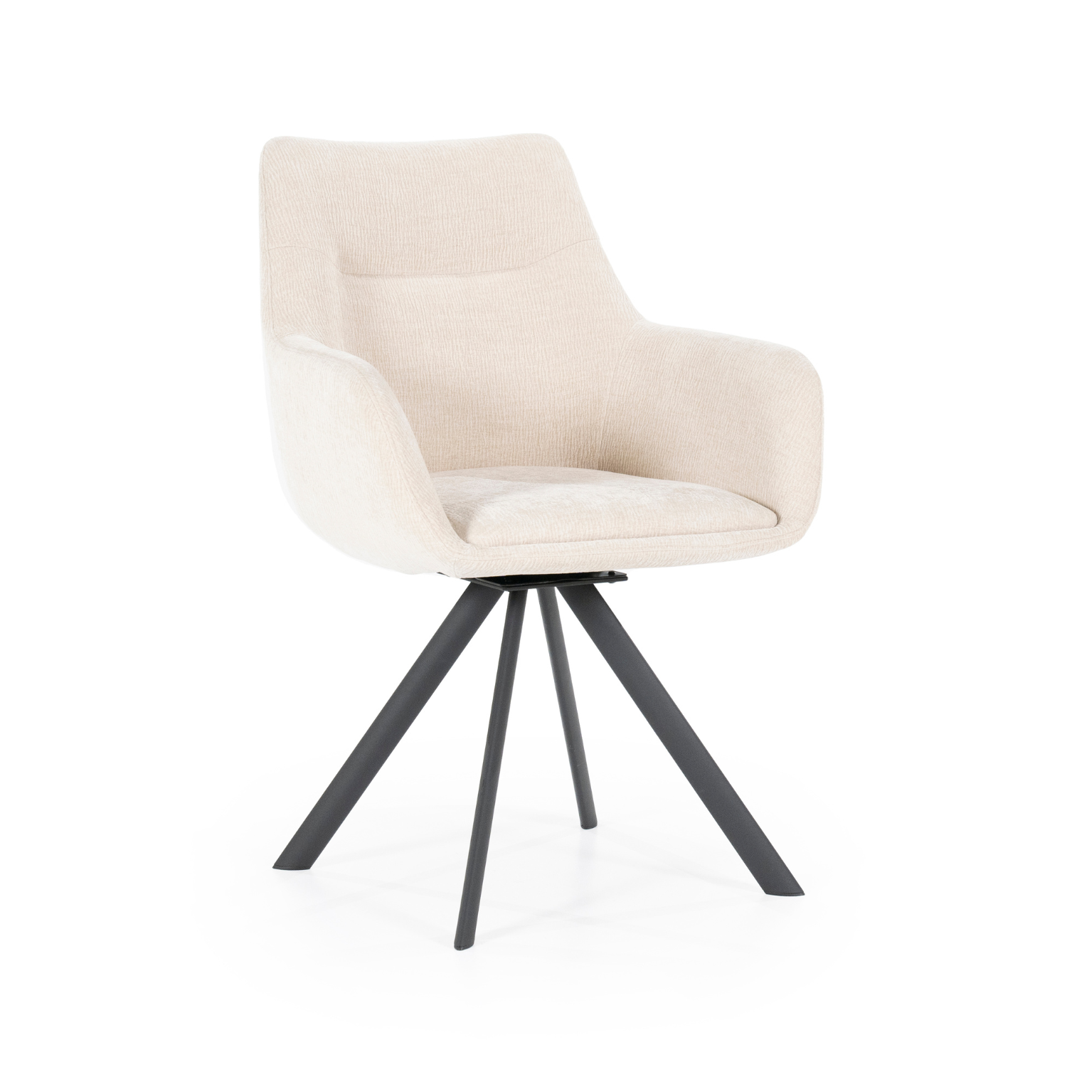Chair Boy is a modern model that combines simplicity of form with high functionality. The slim, black metal legs provide stability to the structure, while the gently contoured seat ensures comfort even during prolonged use. The light upholstery in a neutral color brings a sense of airiness and elegance to the interior, perfectly complementing both modern and classic arrangements.