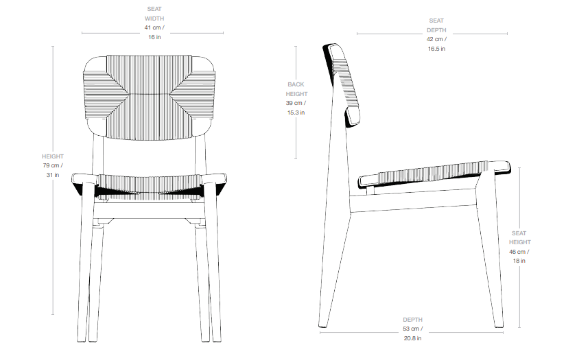 The solid construction based on massive wooden legs contrasts with the light, visually subtle seat, giving the whole a balanced and modern character. The C-Chair captivates with its minimalist aesthetic and exquisite craftsmanship from high-quality wood, making it a timeless element of interior design.