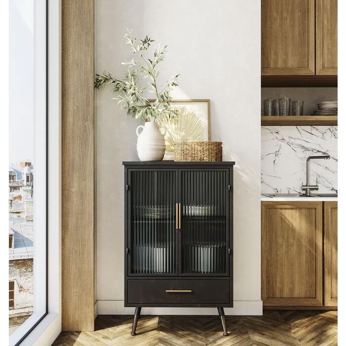 This cabinet is ideal for the kitchen or living room - and even for the bathroom. It pairs beautifully with other models from this furniture series.