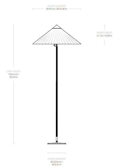 Floor lamp 9602, also known as the "Chinese Hat," was designed by Paavo Tynell in 1935 for the legendary Aulanko hotel. Its characteristic conical shade and elegant rattan-covered stem give it a sense of lightness and timeless class. This design combines masterful craftsmanship with a unique aesthetic sensitivity.
