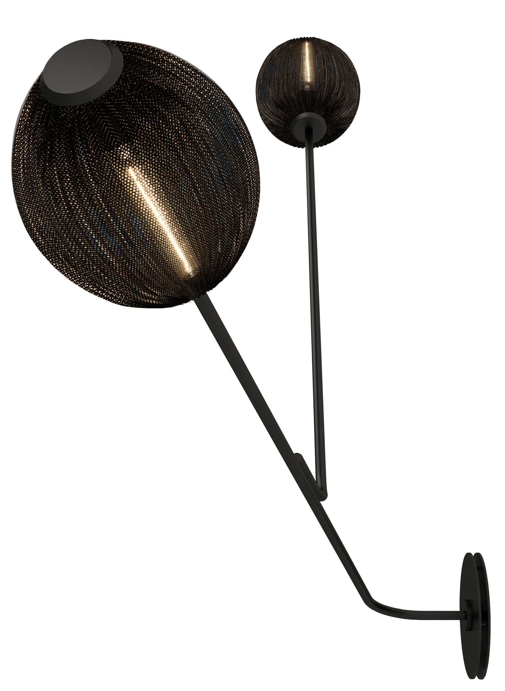 The shades are available in white or in a combination of both versions, while the lamp structure is maintained in elegant black. Moreover, the wall lamp Satellite can also be mounted on the ceiling – creating a spectacular, sculptural light composition. It is an excellent choice for home, hotel, or office spaces where light is also meant to be a form of expression.