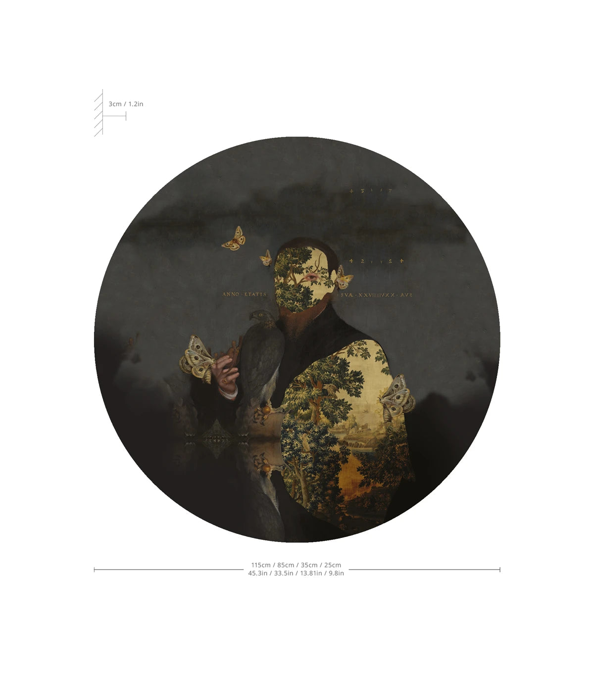 Circle-shaped Mural DOTS - BAROQUE LADY brown