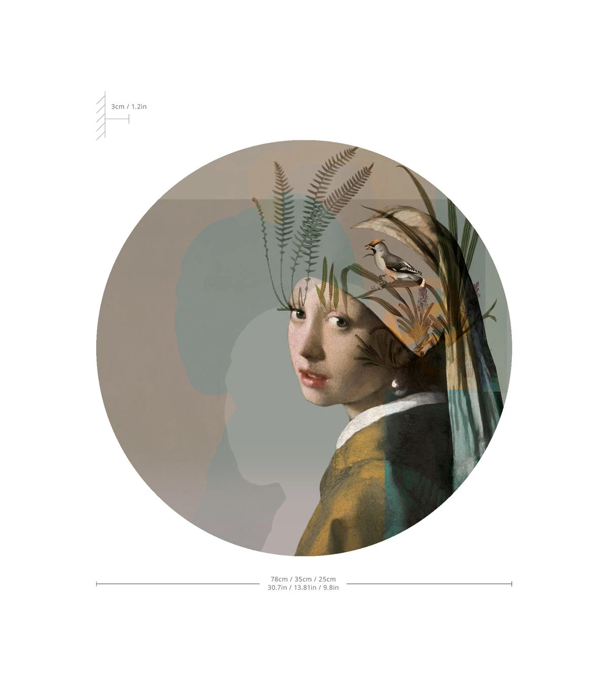 Wall lamp Dots Lighting Nature Girl with the Pearl is an extraordinary lighting piece that combines the classic beauty of art with a modern decorative form. Inspired by the famous work of Johannes Vermeer, the illustration depicts a girl with a pearl surrounded by subtle, botanical motifs, creating a composition full of elegance, delicacy, and artistic expression. The subtle backlighting emphasizes the soft contours of the illustration, giving it a noble, atmospheric character.