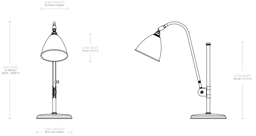 The BL1 table lamp is an iconic model designed by Robert Dudley Best in 1930. Its minimalist design, with clear references to the Bauhaus style, makes it a perfect fit for any office, bedroom, or living room. It’s no wonder Winston Churchill chose it for his desk – it combines elegance, functionality, and a timeless form. With its adjustable height and rotating shade, the BL1 lamp provides optimal lighting for work or relaxation.