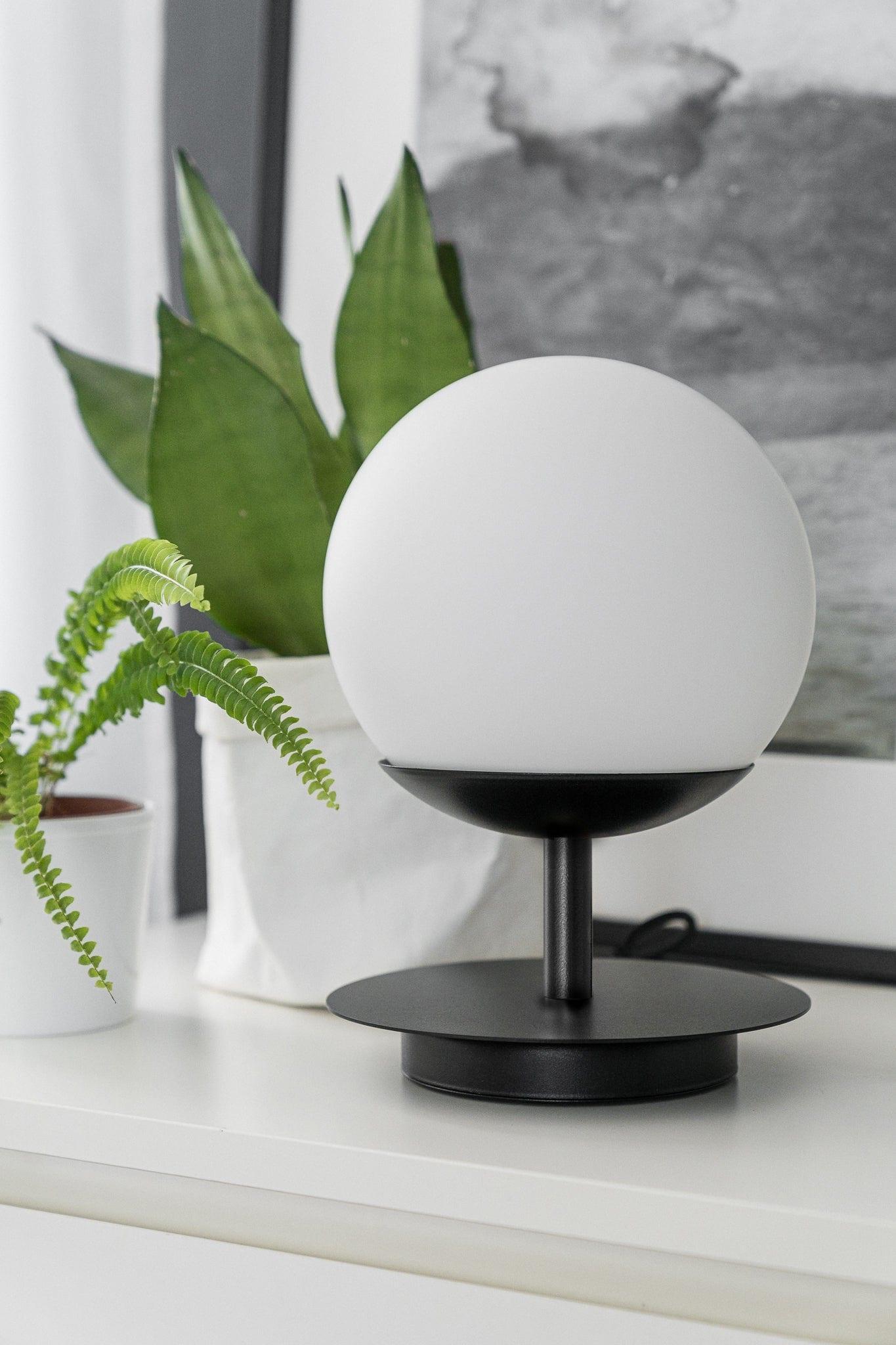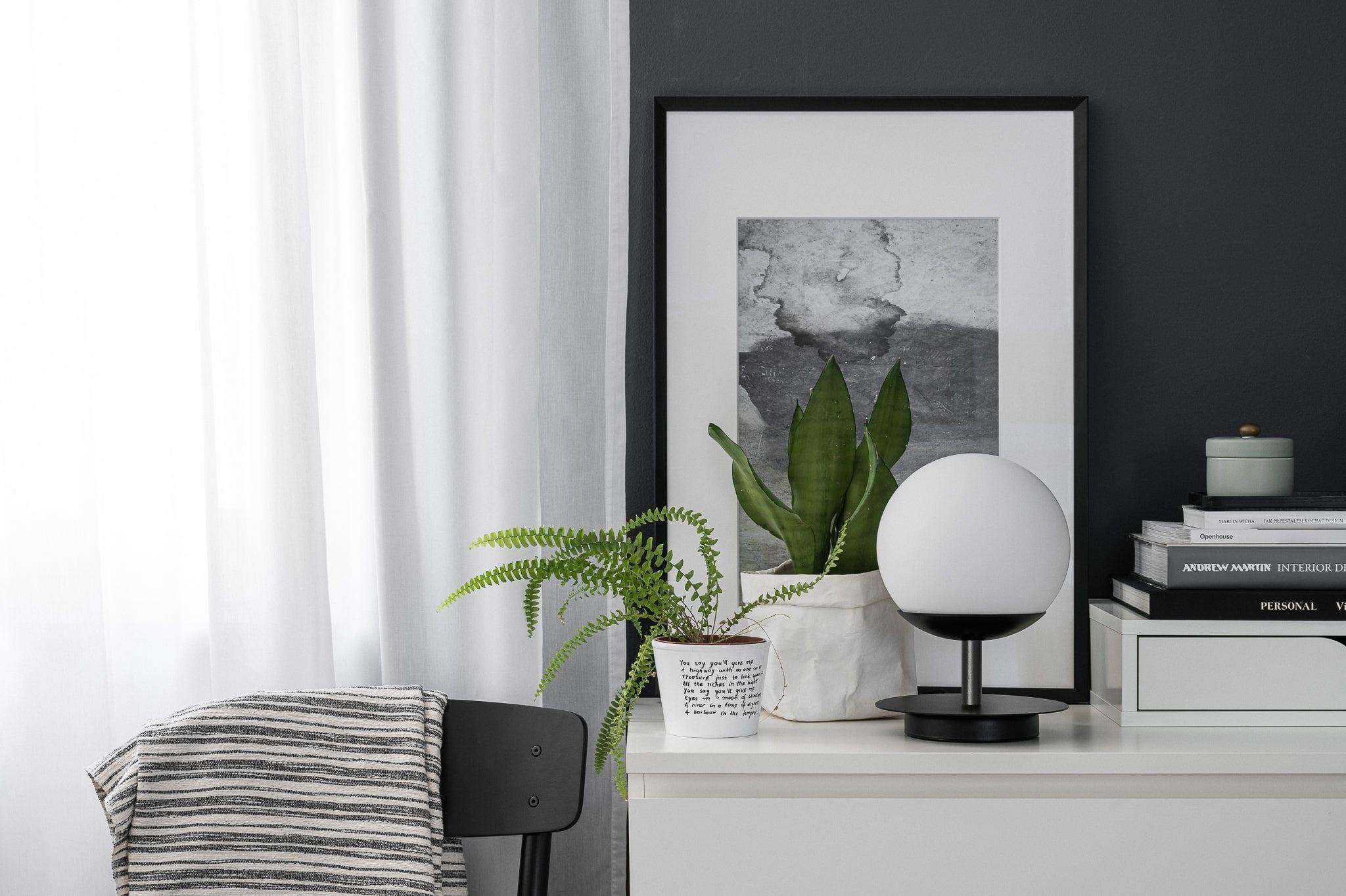 Table lamp Plaat is a proposal for those who seek more than just light. Its form references geometry and poetry – the globe-shaped shade covered by a metal disk resembles an elegant umbrella, creating a subtle yet strong visual accent. Thanks to its compact size, it is perfect for a nightstand, desk, console, or reading nook.