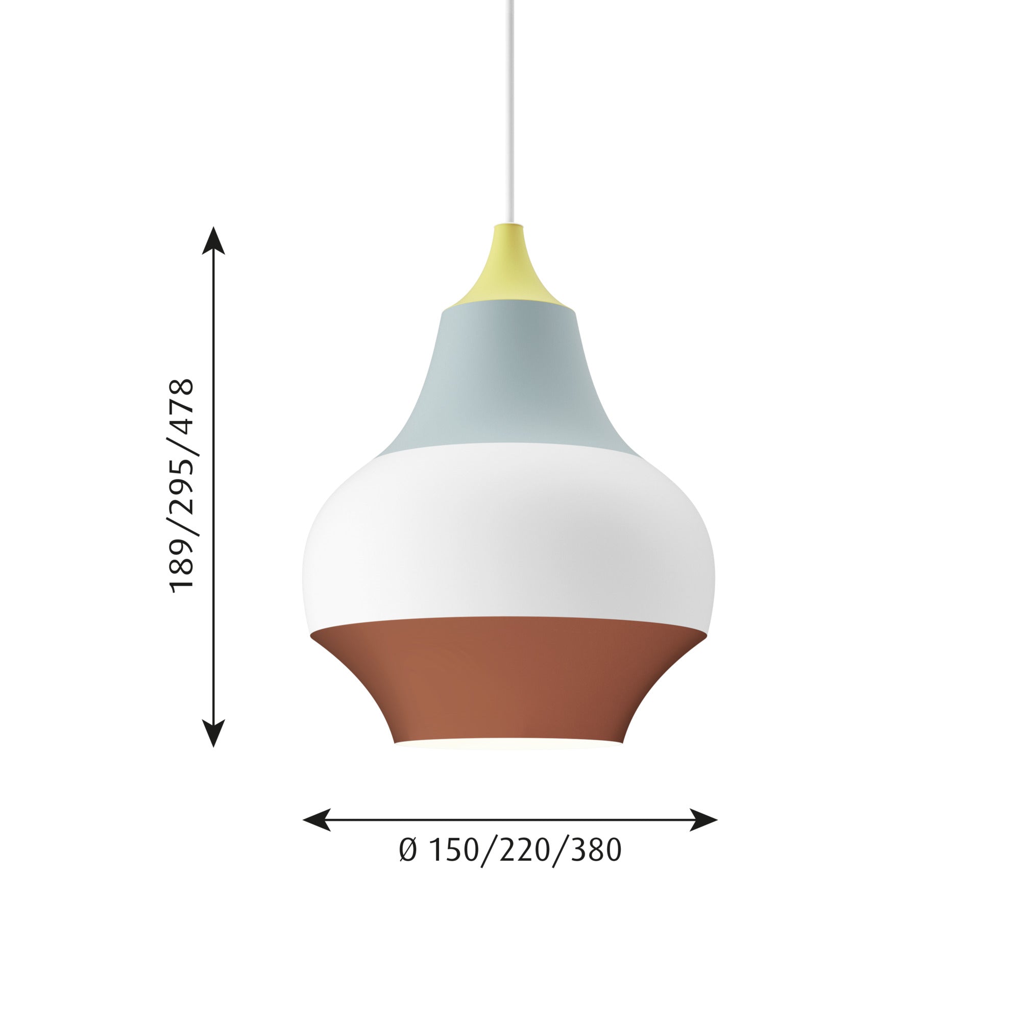 Thanks to the white, lacquered interior of the shade, the pendant lamp Cirque provides soft, pleasant light that is glare-free, making it perfect for dining rooms, kitchens, or living rooms. Available in three sizes, it fits perfectly into any space – whether as a single accent or in a combination of several lamps creating a dynamic, light composition. Cirque is the essence of modern form, color, and light in one.