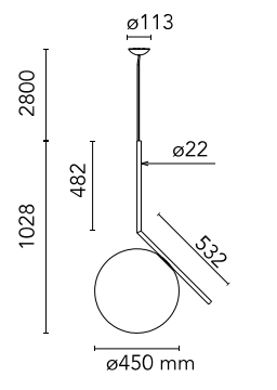 Hanging lamp IC Lights 3 in a brass finish is a combination of visual lightness and refined form, capturing attention with its elegant simplicity. The delicate globe made of opal, blown glass appears to be suspended in perfect balance on a slender brass arm, creating a subtle yet striking accent in the space.