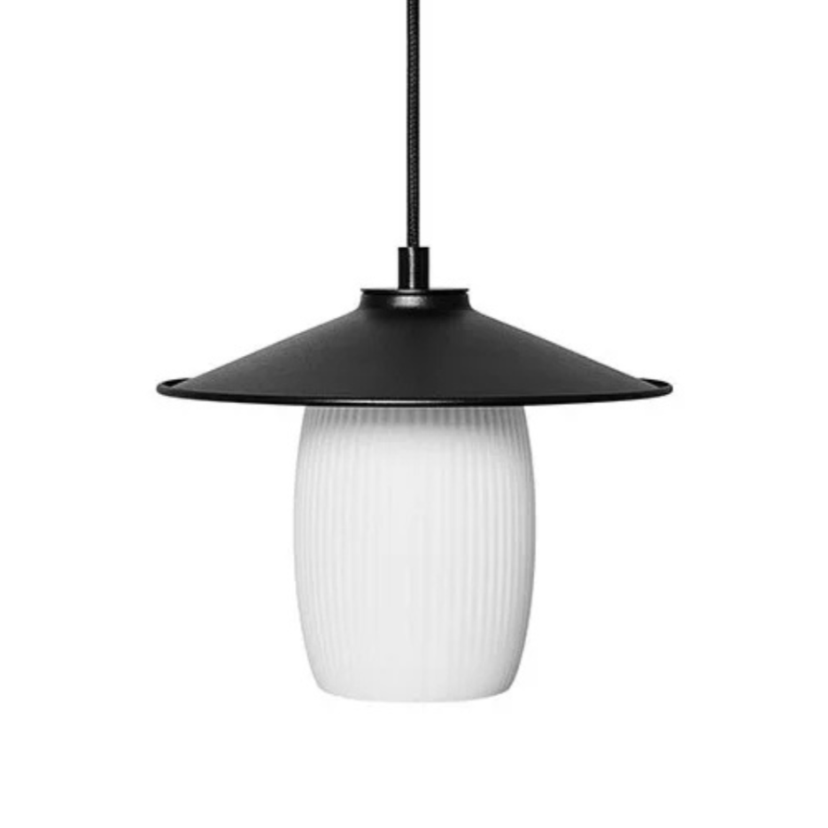 Pendant lamp Jingu is a harmonious blend of classic elegance and contemporary design. The characteristic, ribbed shade made of frosted glass subtly diffuses light, creating a cozy atmosphere in any space.