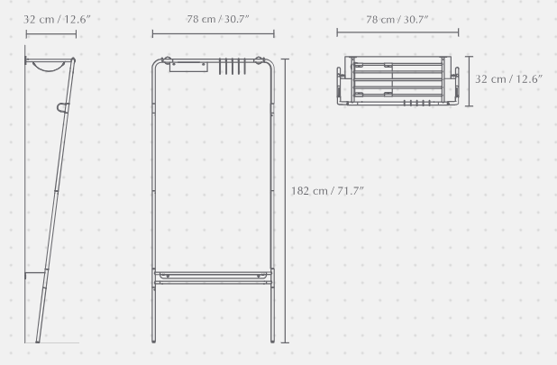 Clothes hanger Lean On Me has been designed to allow convenient storage of all necessary things outdoors, while using the available space. His innovative design allows him to rely at an angle from the wall at the base, which makes it take up a minimum amount of space on the floor.