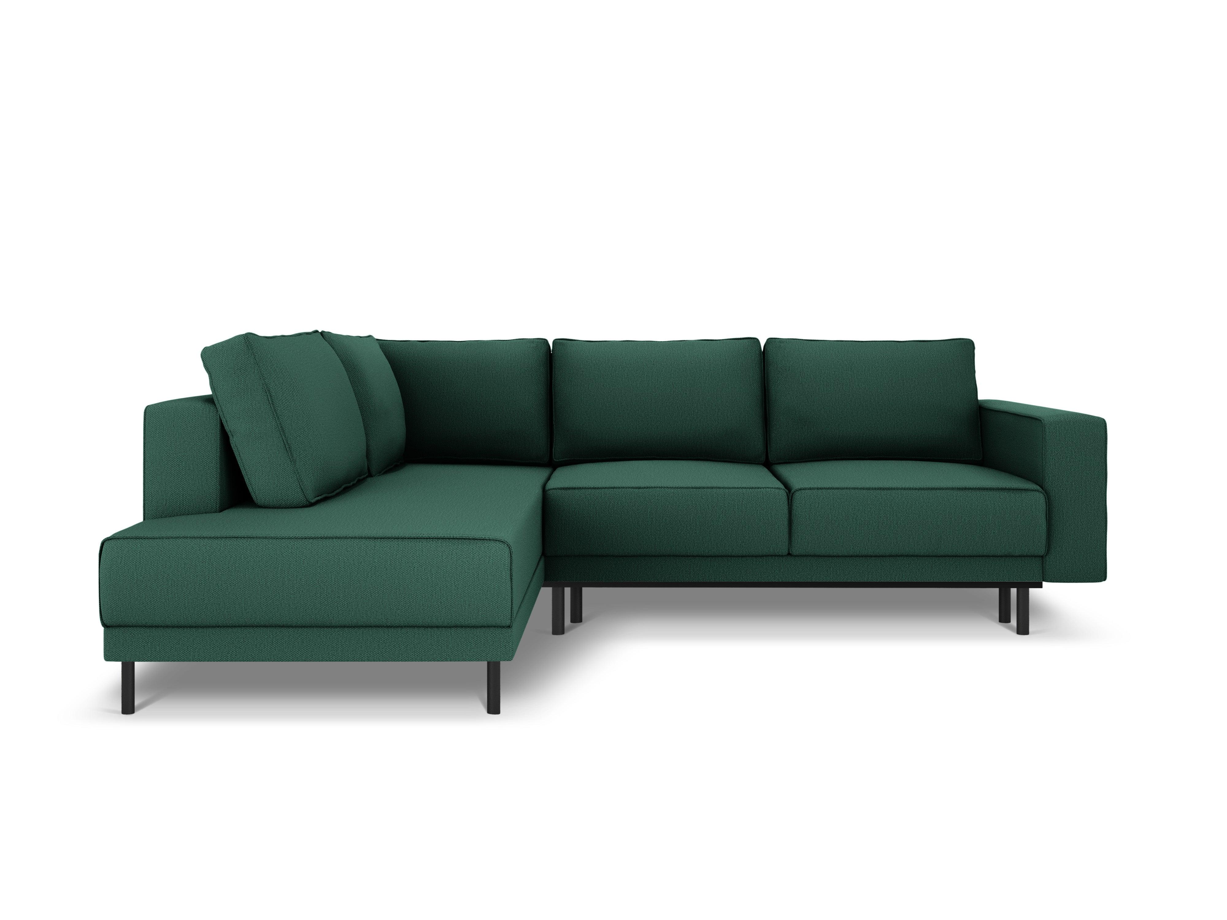 Sturdy legs in black perfectly complement the classic silhouette of the furniture. The upholstery made of structural fabric with a visible, flat weave of fibers not only looks beautiful but is also pleasant to the touch and resistant to abrasion. If you are looking for an impressive and practical corner sofa that will never go out of style, then Caro will be the perfect solution!