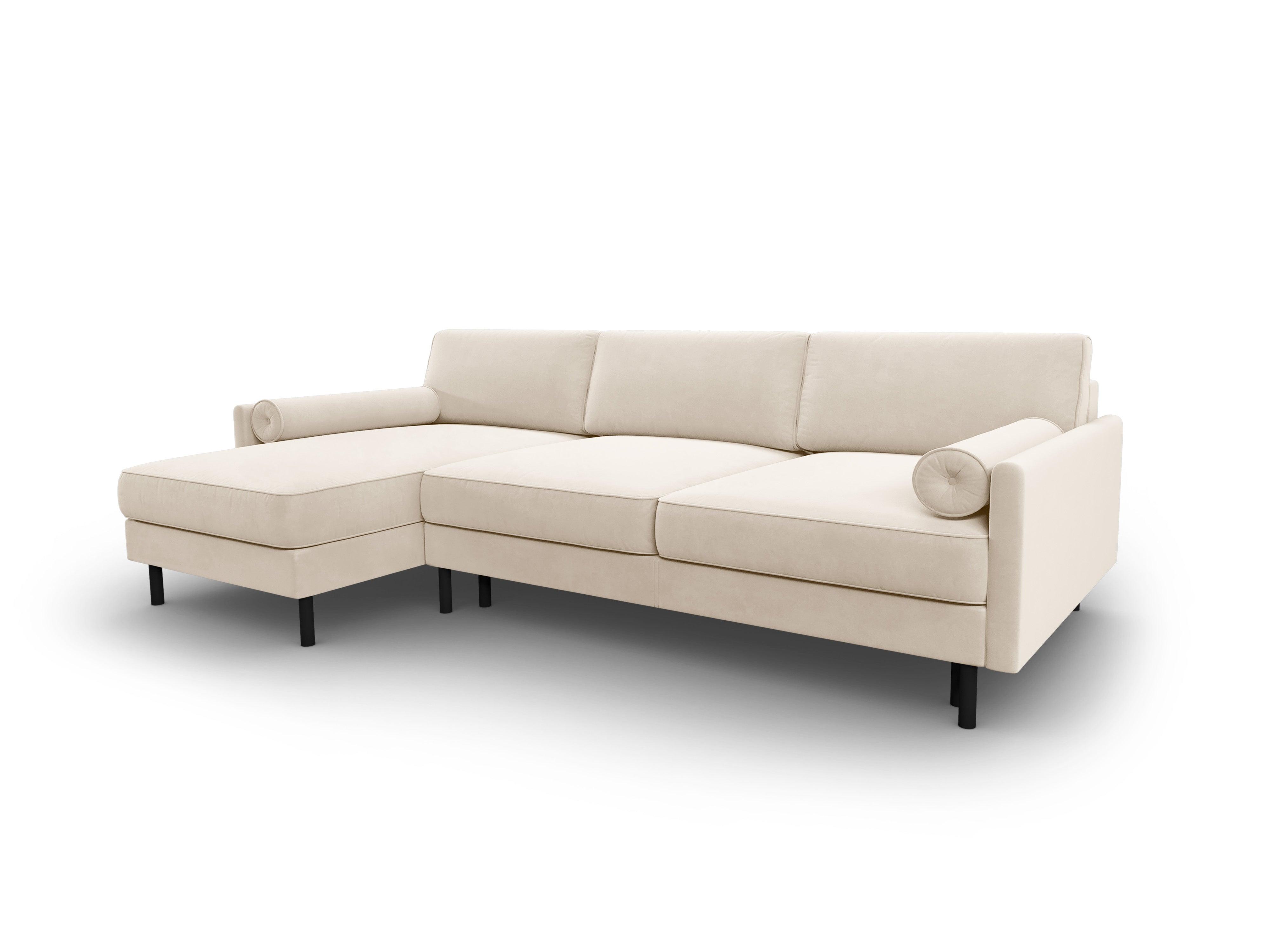 Narożnik aksamitny lewostronny z funkcją spania SCOTT jasnobeżowy Micadoni    Eye on Design