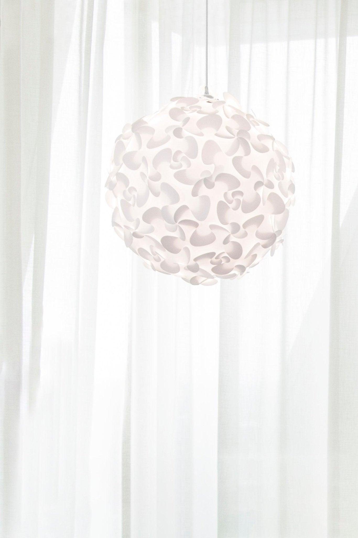 Shade Lora in white is a perfect choice for adventurous souls. Allow yourself to explore the pattern and discover new shapes that will transport your thoughts to picturesque flower fields. Lora is a true challenge, as it consists of nearly 65 identical pieces, creating a fascinating puzzle of light.
