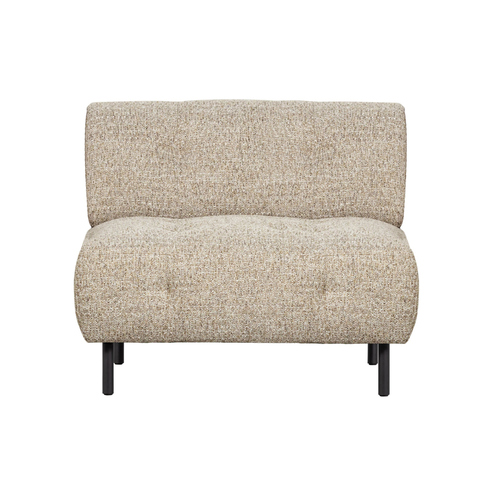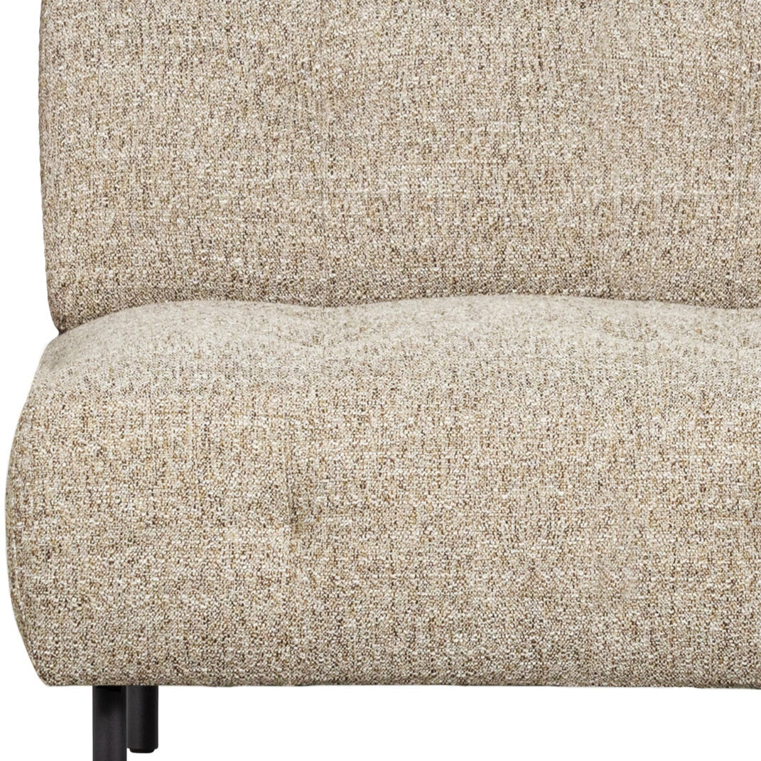 Comfortable armchair without armrests from the Lloyd series is a stylish addition to your living room, perfectly suited as a standalone piece or as part of a corner sofa extension. The upholstery in a thick woven mélange and the classic quilted seat give it a unique charm, while its compact dimensions make it easy to fit into various arrangements.