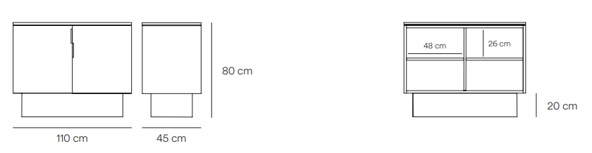 Low cabinet Totem in a deep anthracite color attracts attention with its almost monolithic appearance, encouraging to contemplate, as if it was a sculpture exceeding the boundaries between function and form.