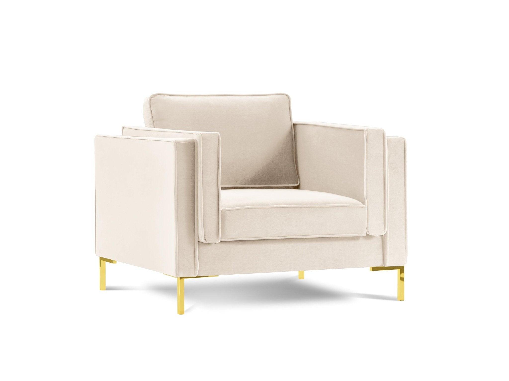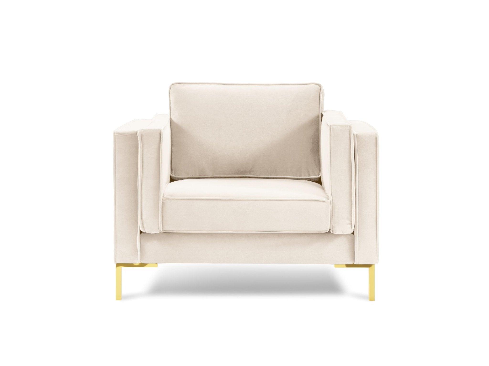 Luis beige velvet armchair with a golden base