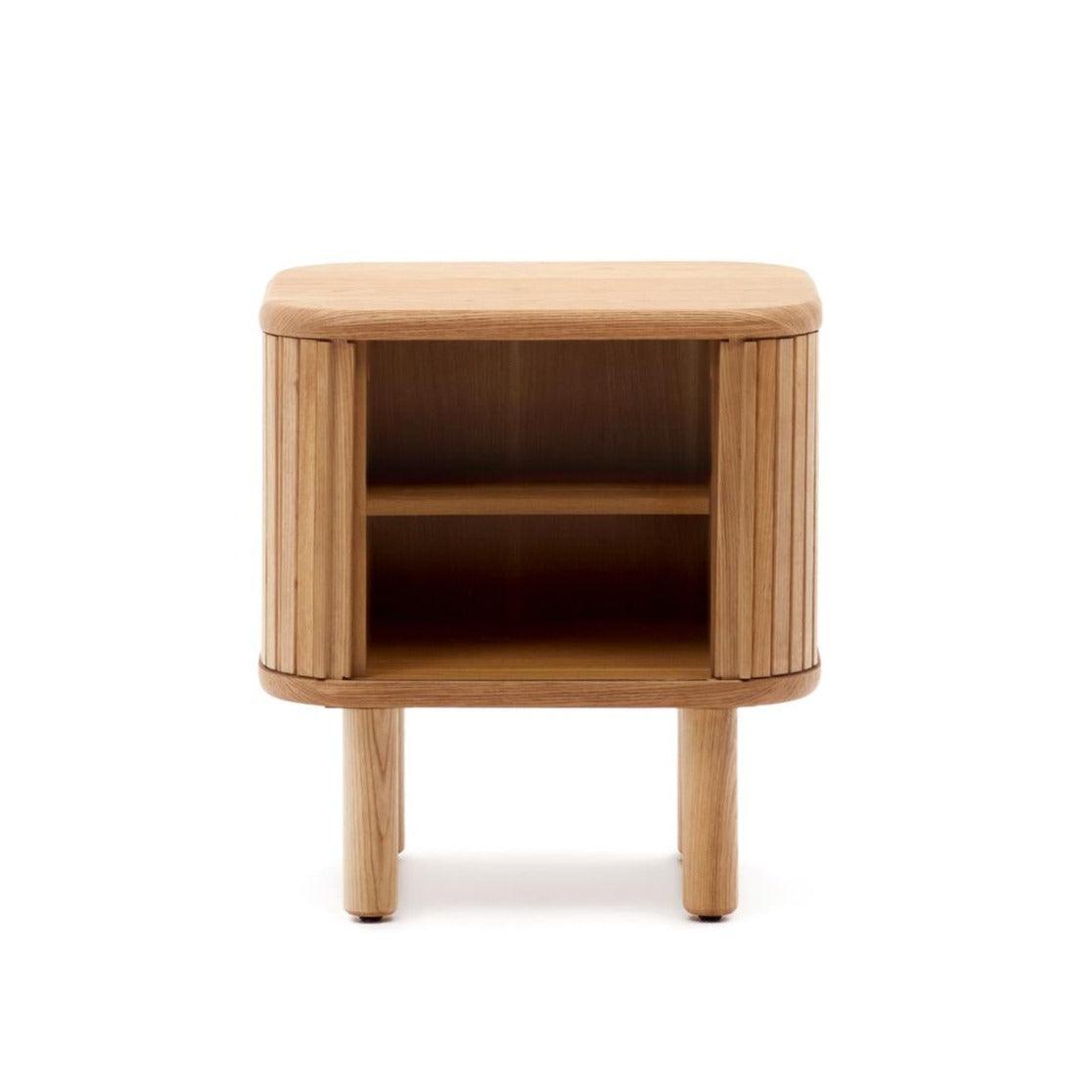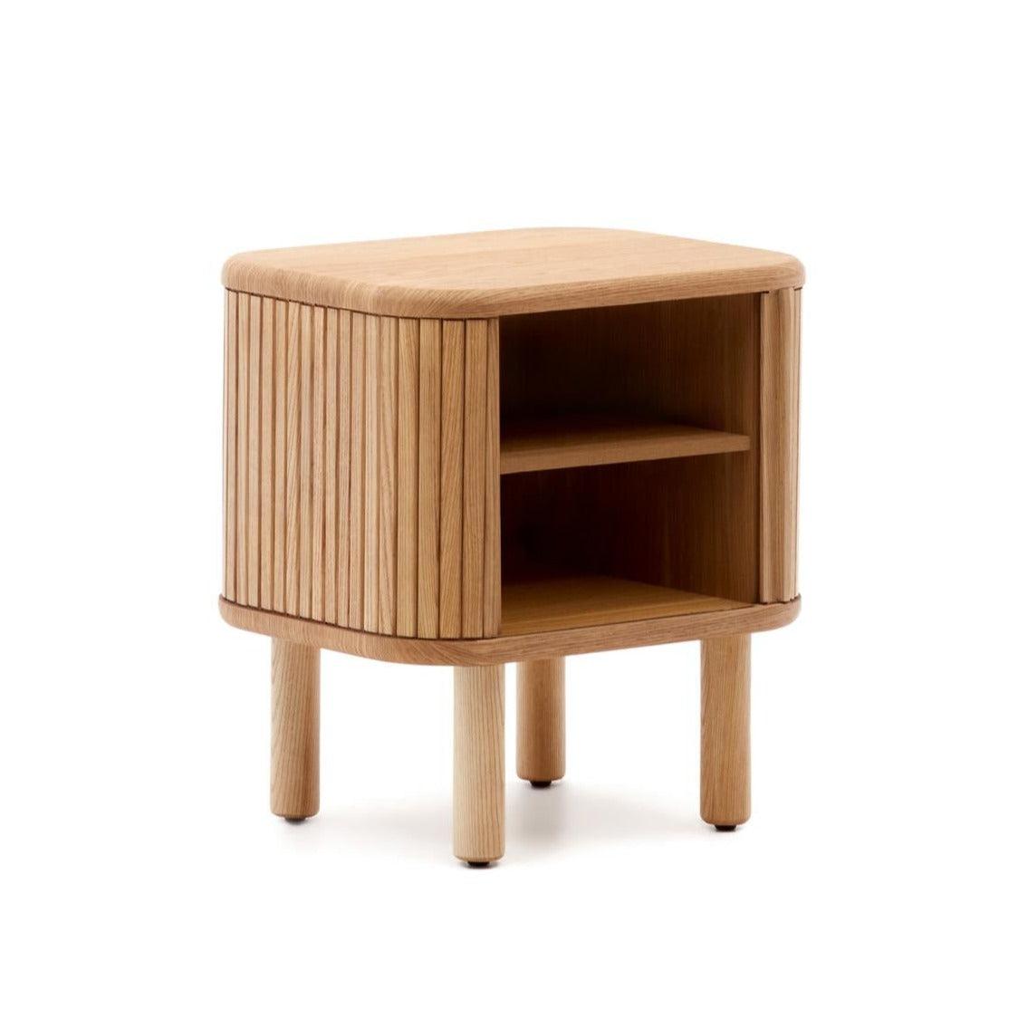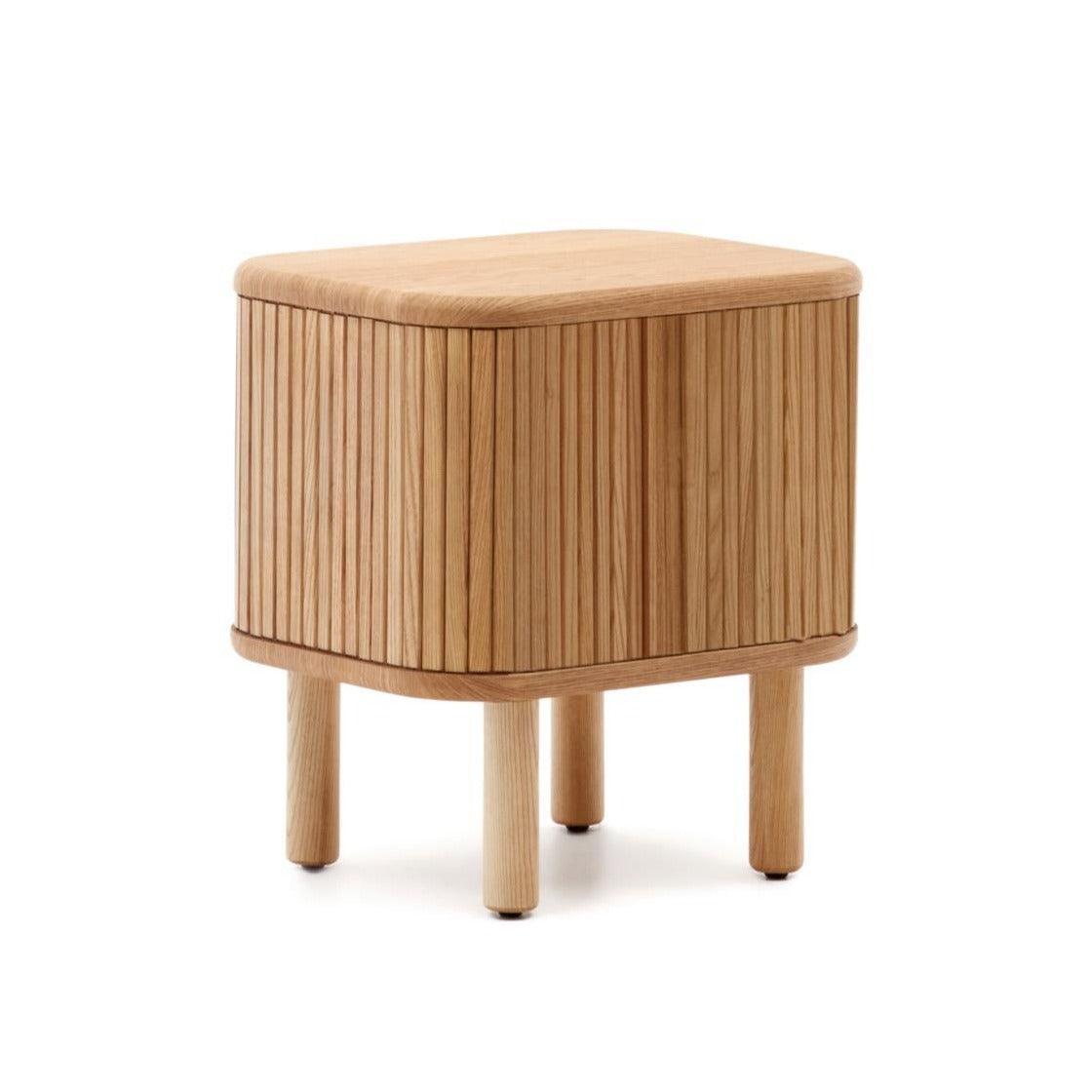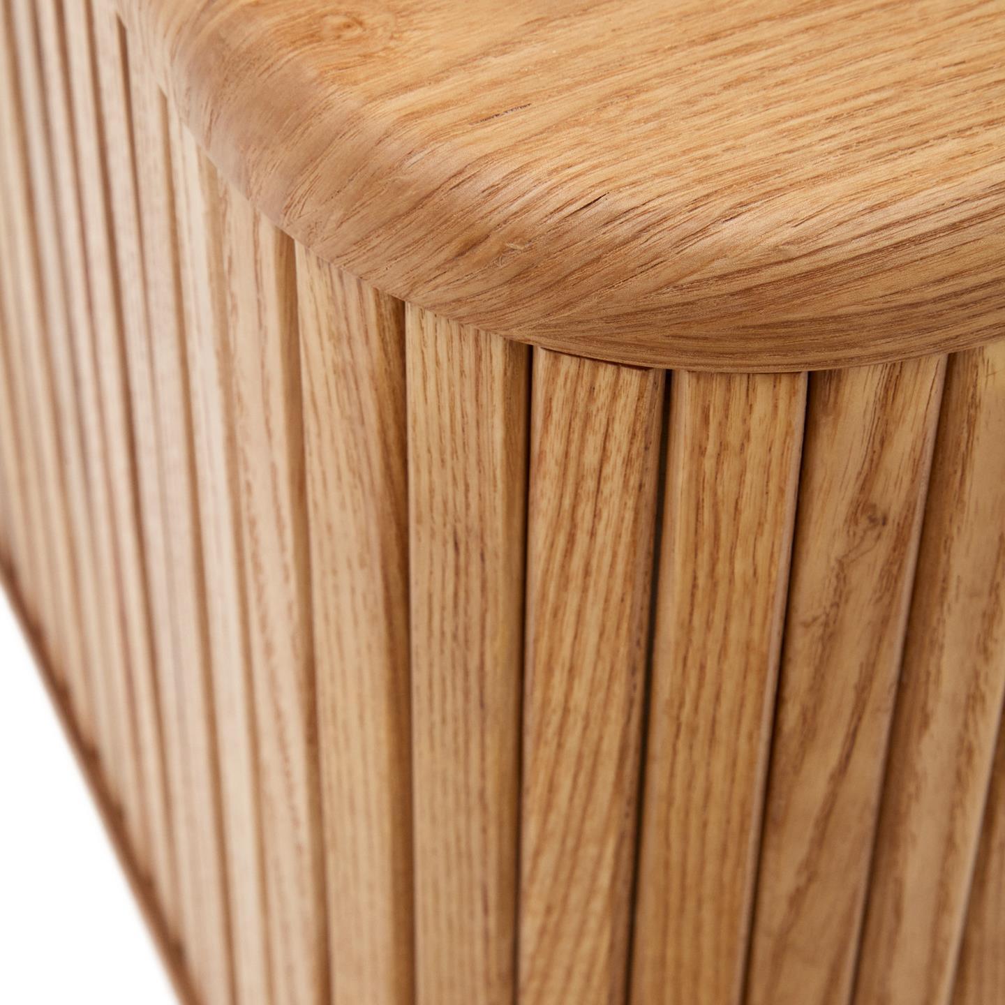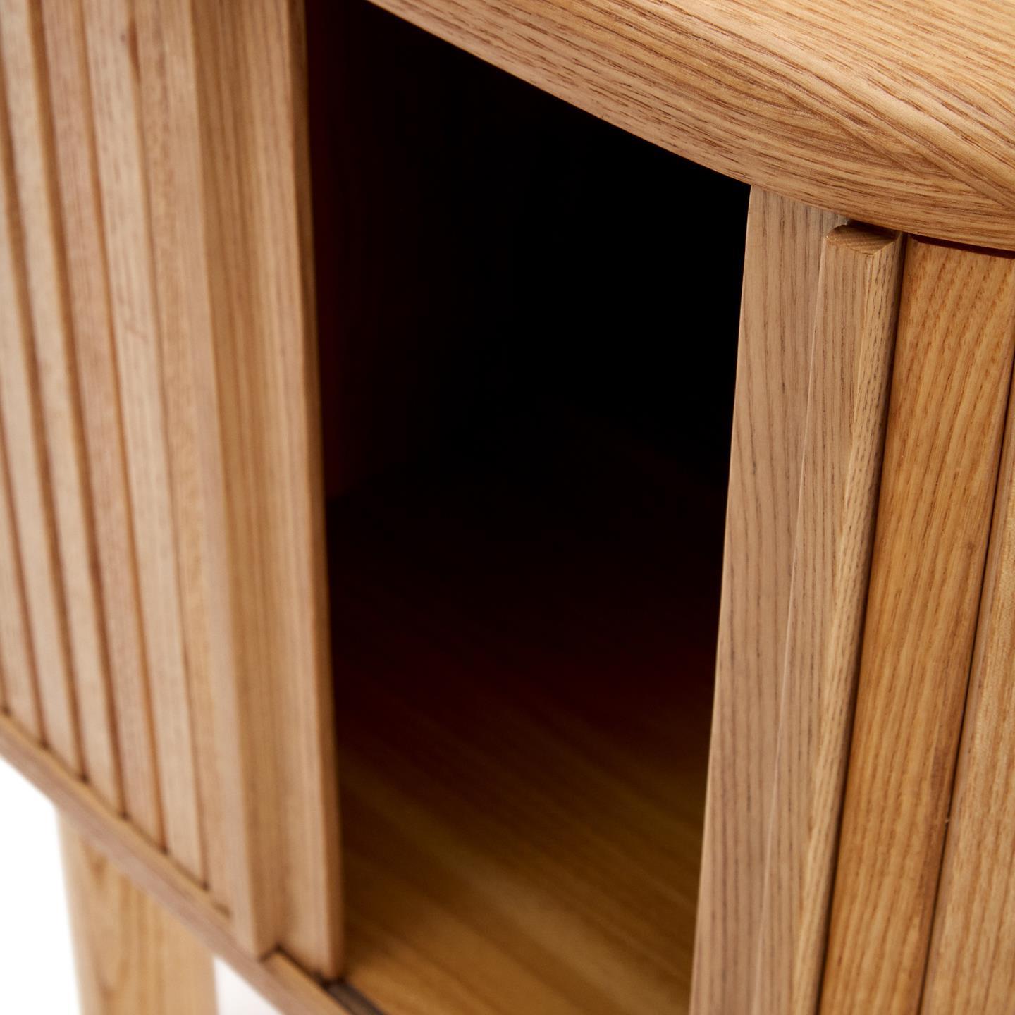 The Kave Home team has created a Milelen collection with a modern design with rounded shapes. The furniture is made of ash veneer, with sliding doors with wooden slats, giving the collection a distinct character.