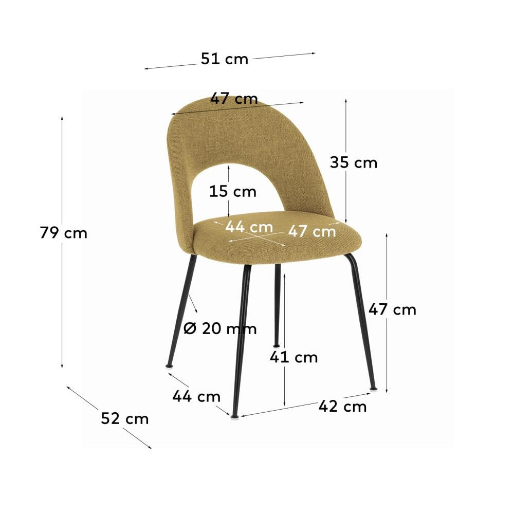 Have you ever spilled coffee or wine on your chair? Don't worry! The upholstery fabric of the mustard chair Mahalia has been specially designed to be waterproof and very easy to clean. This way, even the smallest accidents won't stand in the way of your comfort and peace of mind.
