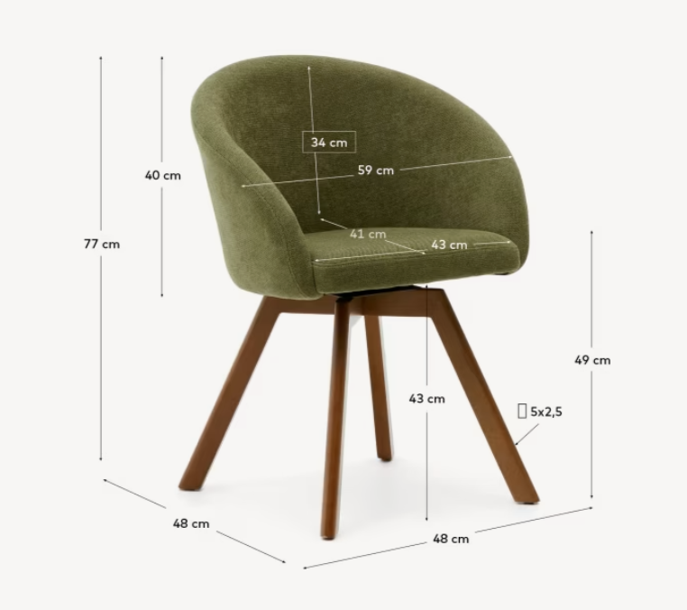 Marvin green swivel chair with a nutty base