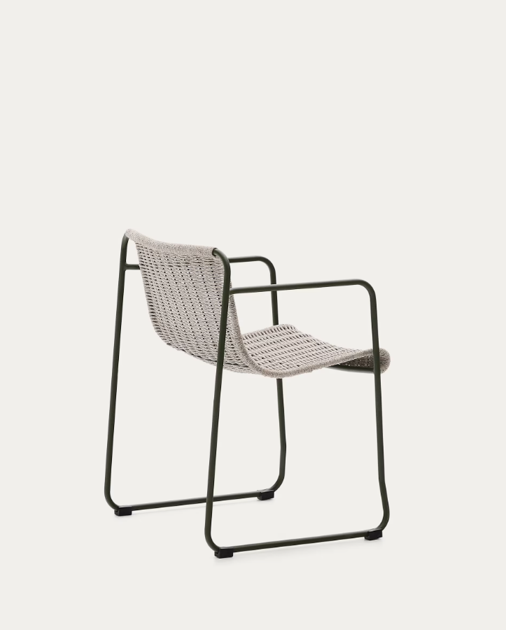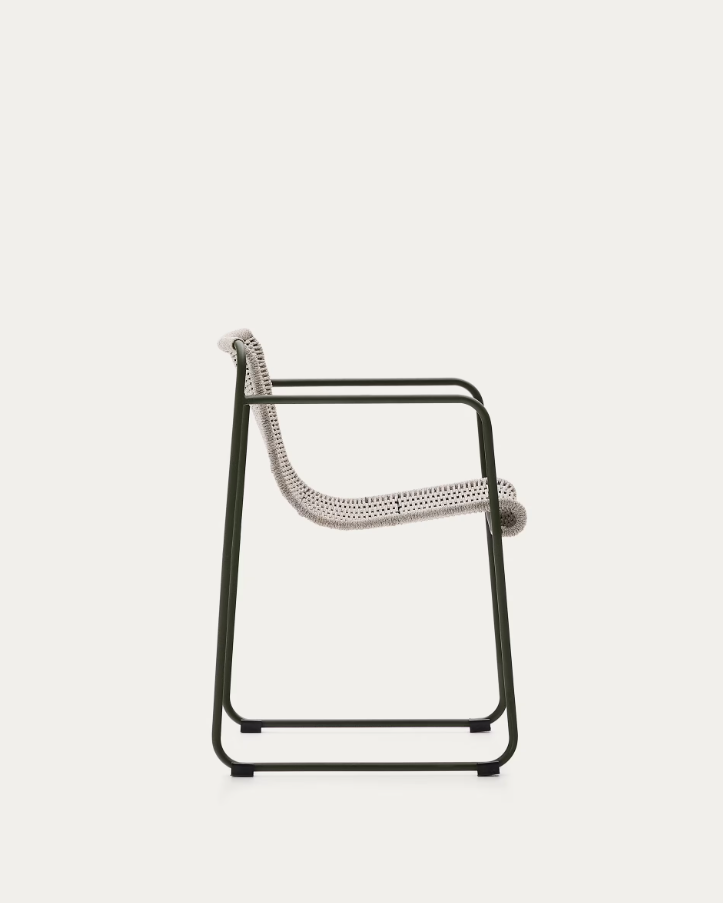 Made of galvanized steel, the chair is resistant to rust and corrosion, which guarantees strength and longevity, even in difficult weather conditions. The seat and support from a hand -woven UV -resistant rope ensure comfort and breathability, and at the same time add a unique character.