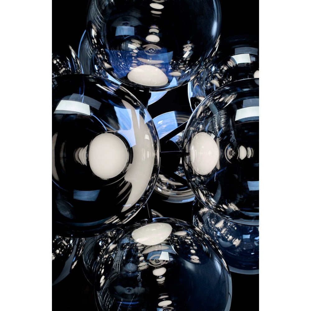 Chandelier Melt Burst is modern ceiling lighting in an elegant silver finish, designed by Tom Dixon. Lamp It is made of metal and plastic, and its integrated LED module creates a hypnotizing effect of melted, hot glass, when it is turned on, and the effect of a mirror finish when it is turned off. Produced in Germany using advanced inflatable forming technology and vacuum metalization, lamp It is characterized by a perfectly melted spherical shape.