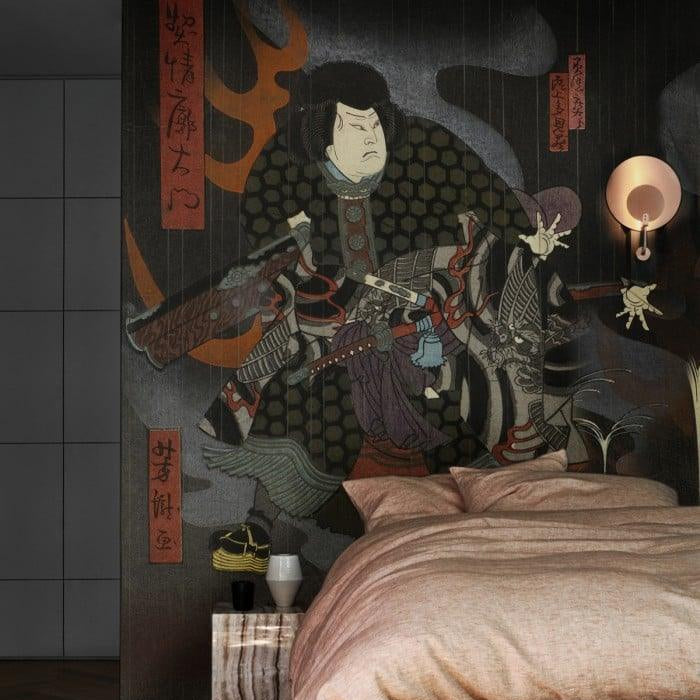 Non-woven wallpaper with a warrior motif MIDNIGHT WARRIOR dark gray
